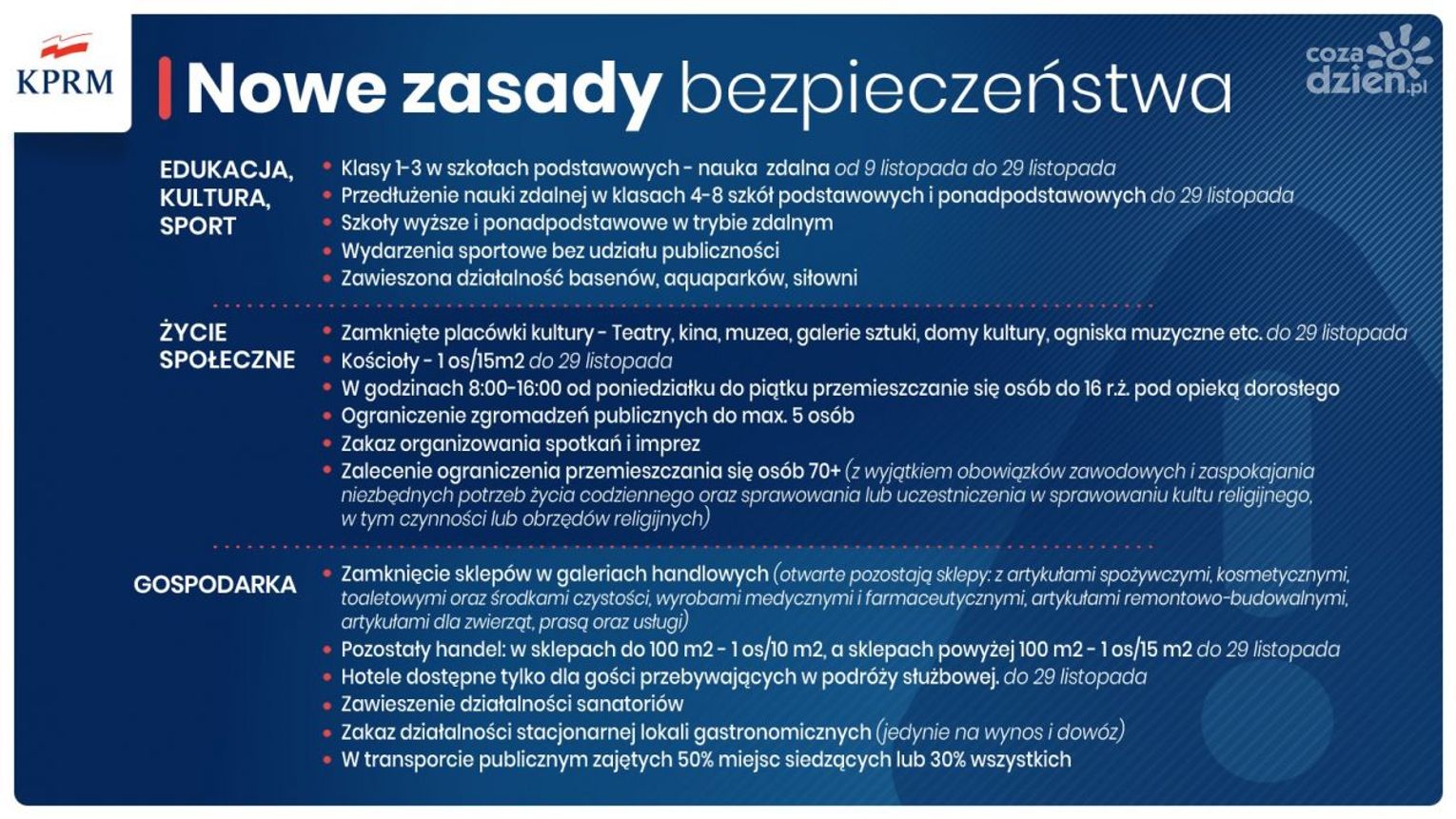 Nowe obostrzenia podyktowane są pogarszającą się sytuacją epidemiczną w kraju. Oto, co nas czeka: