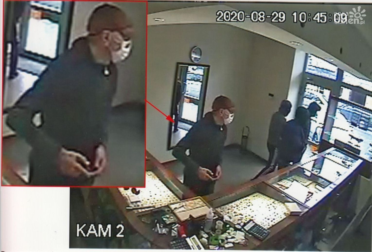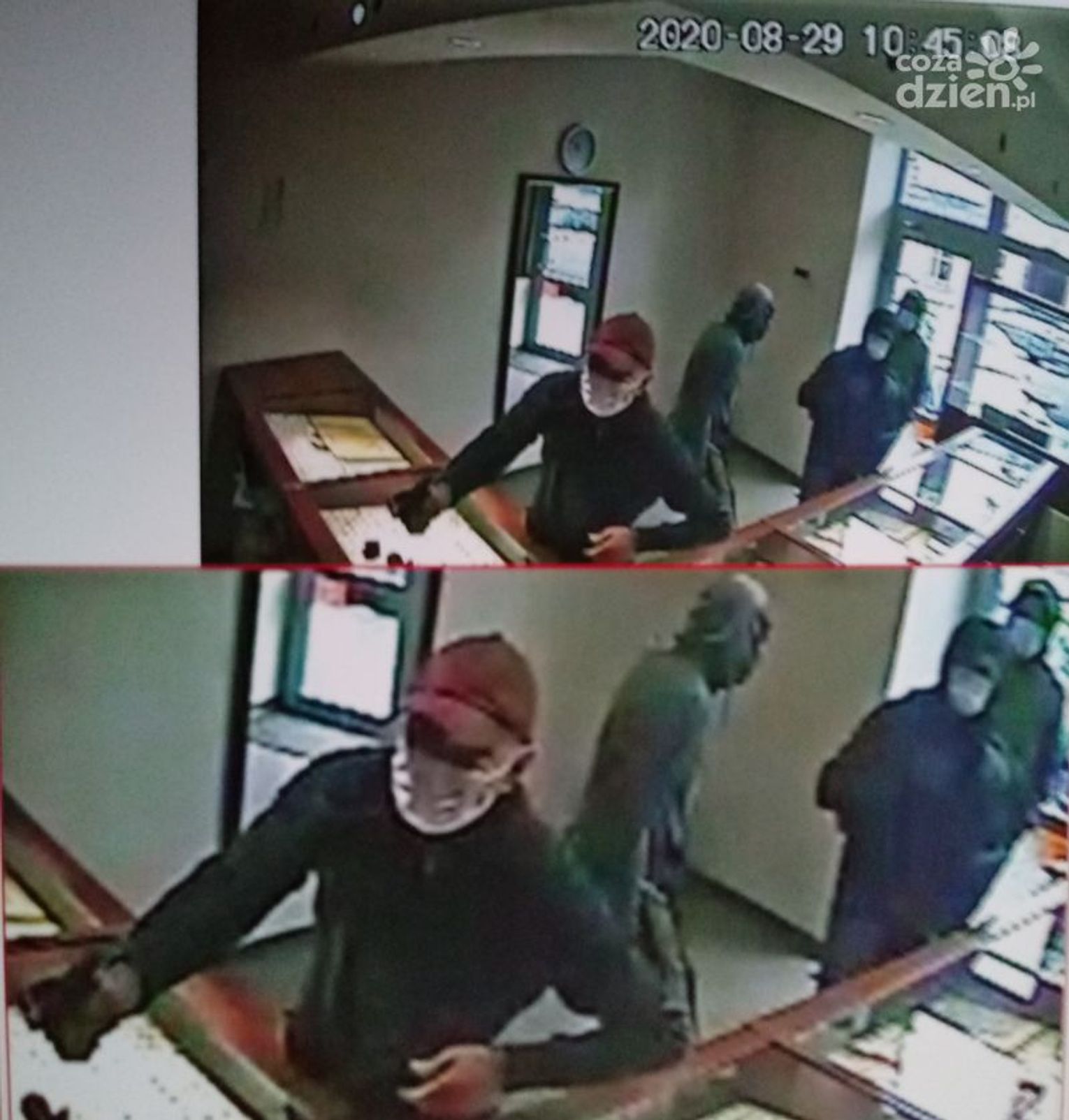 Zgodnie z postanowieniem Prokuratury Rejonowej Radom Wschód w Radomiu policja udostępnia zdjęcia z zapisu monitoringu z prośbą o pomoc w ujęciu sprawców usiłowania rozboju w sklepie jubilerskim w Radomiu. Do zdarzenia doszło 29 sierpnia 2020 r. na ulicy Słowackiego, gdy do sklepu jubilerskiego weszło kilku sprawców. Jeden z nich groził sprzedającym przedmiotem przypominającym broń. Nie udało im się nic ukraść. Wszelkie informacje mogące przyczynić się do ustalenia sprawców należy kierować do policjantów z Wydziału Dochodzeniowo Śledczego Komendy Miejskiej Policji w Radomiu osobiście lub telefonicznie pod numerami 47 701 21 07 lub 47 701 26 30.