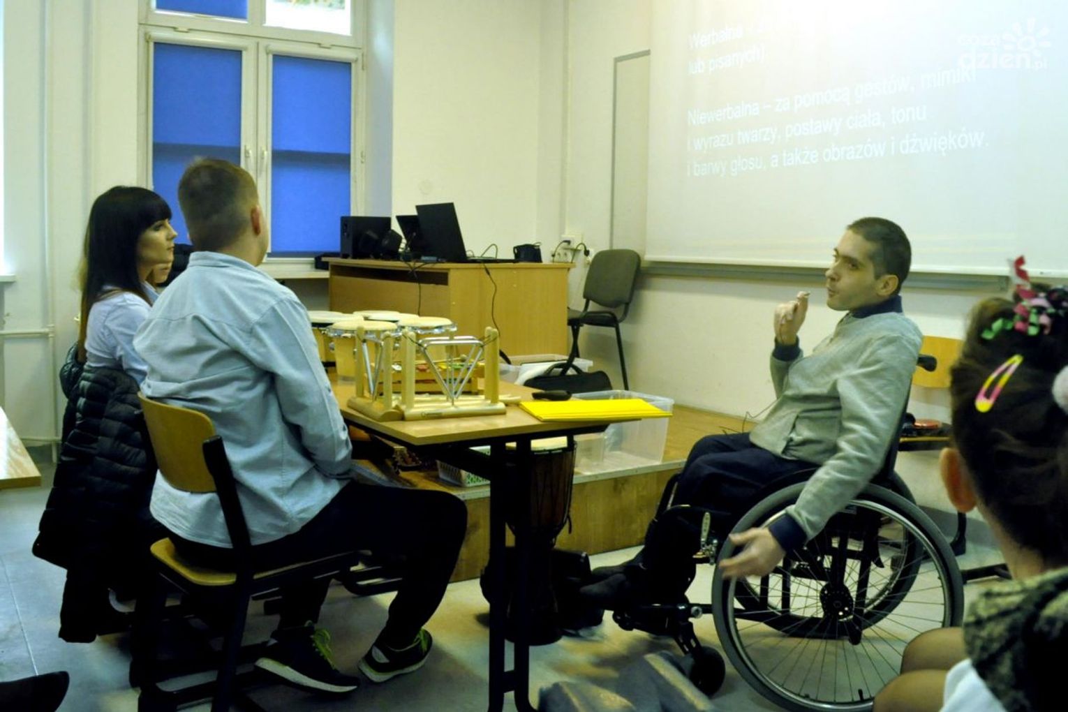 Zostały wyświetlone filmy: „Mikołaj ogląda Cejrowskiego”, „Kuba opowiada: co lubi jeść” prezentujące nowe technologie ułatwiające komunikację niewerbalną. Pokazano m.in. tablicę papierowa, dzięki której dziecko wskazuje, co chce oglądać, wykonuje gest ile razy chce to zrobić, naciska w odpowiednim momencie przycisk rozpoczynający odtwarzanie filmu. Wszystko odbywa się pod okiem opiekuna.