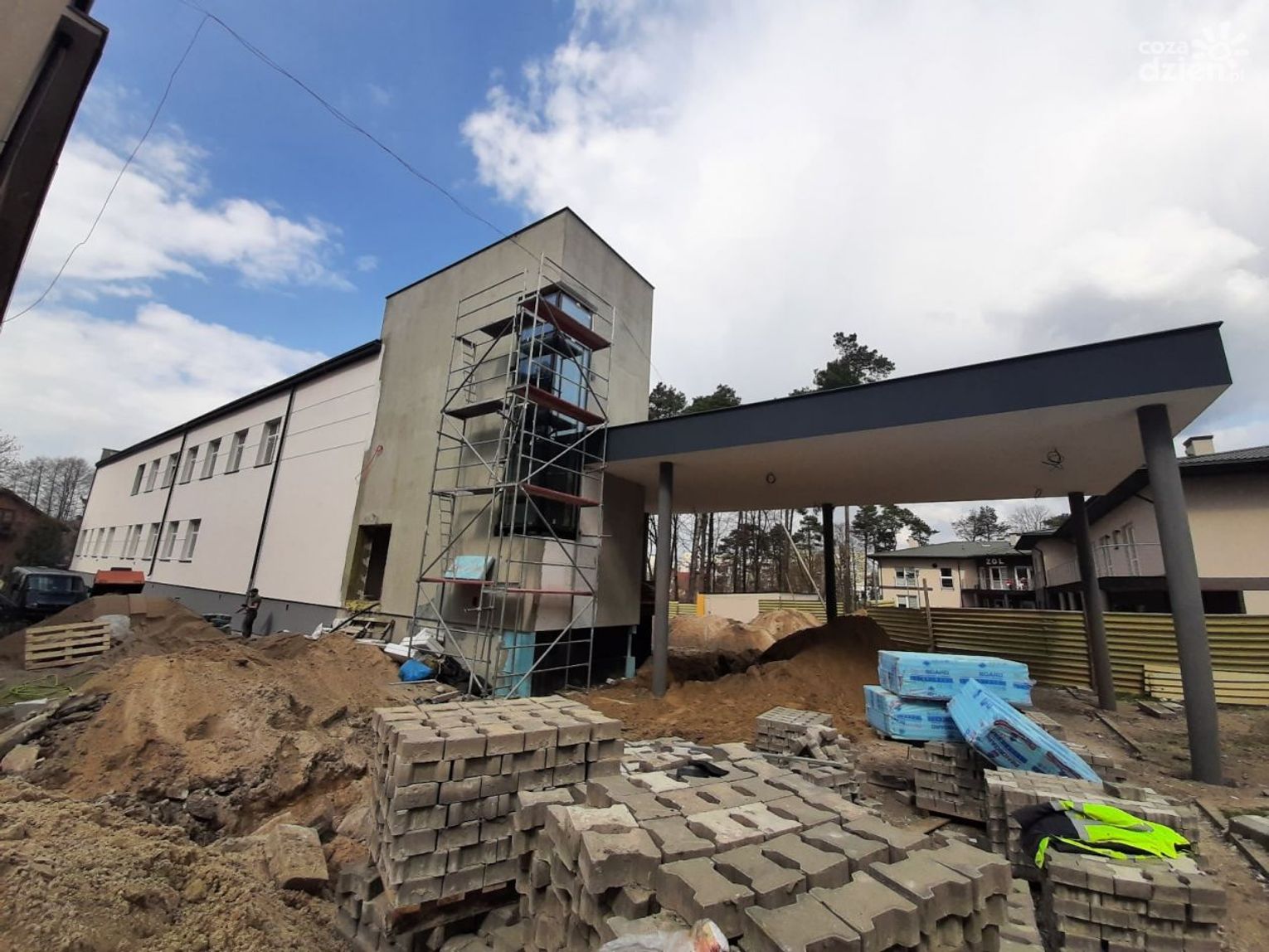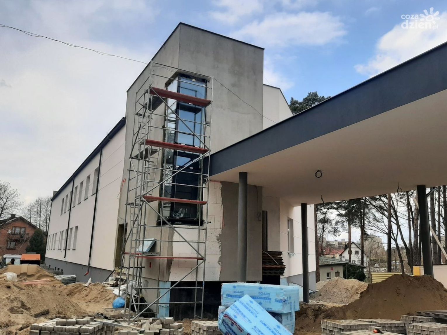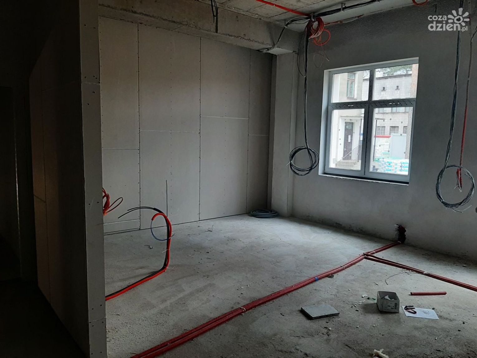 Jak informuje Starostwo Powiatowe w Radomiu, elewacja nowego budynku jest już prawie gotowa. Trwają prace ziemne związane z wykonywaniem instalacji zewnętrznych. Zakończono tynkowanie pomieszczeń i klatek schodowych wewnątrz budynku, teraz montowane są również wszelkie instalacje, wykonana została również większość ścianek działowych. Na Poziomie 0 zrobione zostały posadzki betonowe – obecnie prace trwają na Poziomie 1.