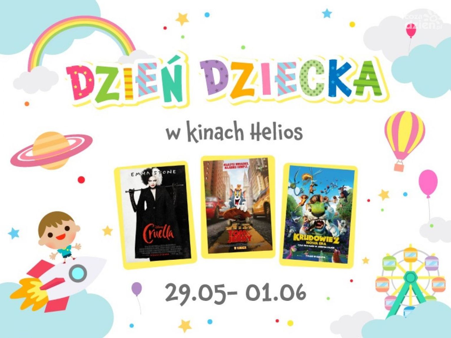 W dniach 29-30 maja oraz 1 czerwca kina Helios będą należały przede wszystkim do dzieci. W kinie Helios w Radomiu również z tej okazji dla najmłodszych widzów przygotowano liczne niespodzianki i atrakcje. W sobotę, 29 maja w godz. 9.30-12.30 odbędzie się zabawa z animatorkami ZabawMnie, w programie m.in.: pokazy wielkich baniek mydlanych, balonowe zwierzątka, tunelowe przeszkody i patyczkowe konstrukcje. Z kolei w niedzielę, 30 maja w godz. 9.30-12.00 kino zaprasza na wir zabawy z panią Animką w programie: konkursy plastyczne, tory przeszkód, wyścigi z jakiem, kolorowe tatuaże. Na dzieci będzie czekał również gość specjalny - Piotruś Królik, który chętnie pokica do wspólnego zdjęcia.