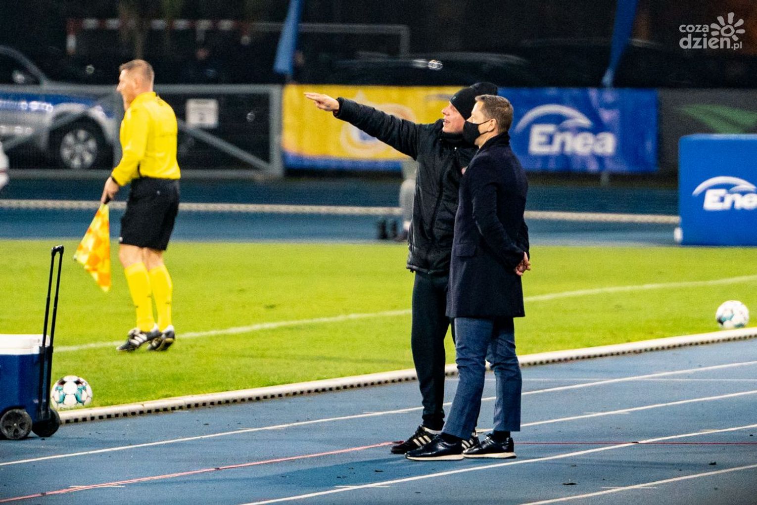 Pierwszą żółtą kartkę trener Banasik otrzymał po tym, jak nie mógł pogodzić się z decyzją arbitra, który ukarał czerwoną kartką Filipe Nascimento. Drugie napomnienie opiekun „Zielonych” ujrzał od Jacka Małyszka kilkanaście minut później. Tym razem za to, że piłkarze z ławki dla zawodników rezerwowych wybiegli do strefy technicznej, domagając się odgwizdania przez sędziego rzutu karnego. - Dla mnie jest to niezrozumiałe. Drużyna wybiega, a karany jest trener – mówił po meczu Banasik.