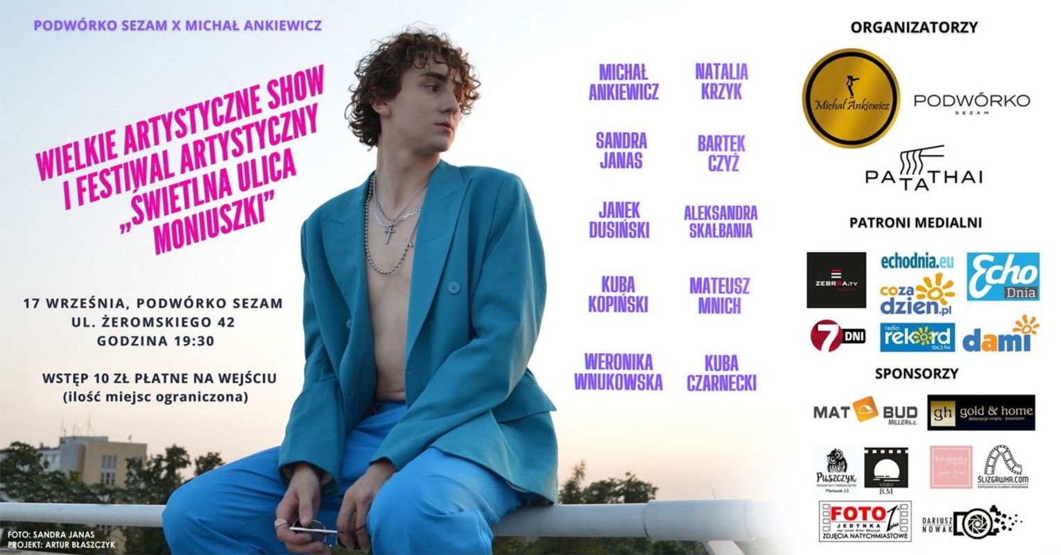 Organizatorem Festiwalu Artystycznego jest radomianin Michał Ankiewicz, tancerz, choreograf. Jak możemy przeczytać na stronie wydarzenia, „Świetlna ulica Moniuszki” - to wielkie show, które przejdzie do historii.