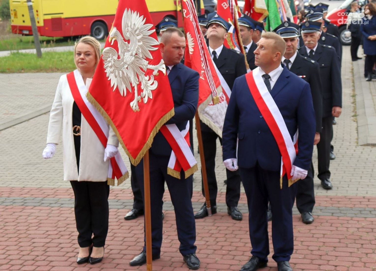 - Wzór sztandaru gminy bezpośrednio odwołuje się do symboliki gminy Gózd. Herb gminy umieszczony został na stronie głównej sztandaru, a symbolika państwowa tj. wzór godła Rzeczpospolitej Polskiej znajduje się na odwrotnej stronie sztandaru. Umieszczone naprzemiennie w narożnikach białego płata sztandaru skrzyżowane złote trzy kłosy zboża i trzy gałązki dębu, symbolizują charakter gminy (rolniczy i leśny) - tłumaczył Marcin Linowski, przewodniczący Rady Gminy Gózd.