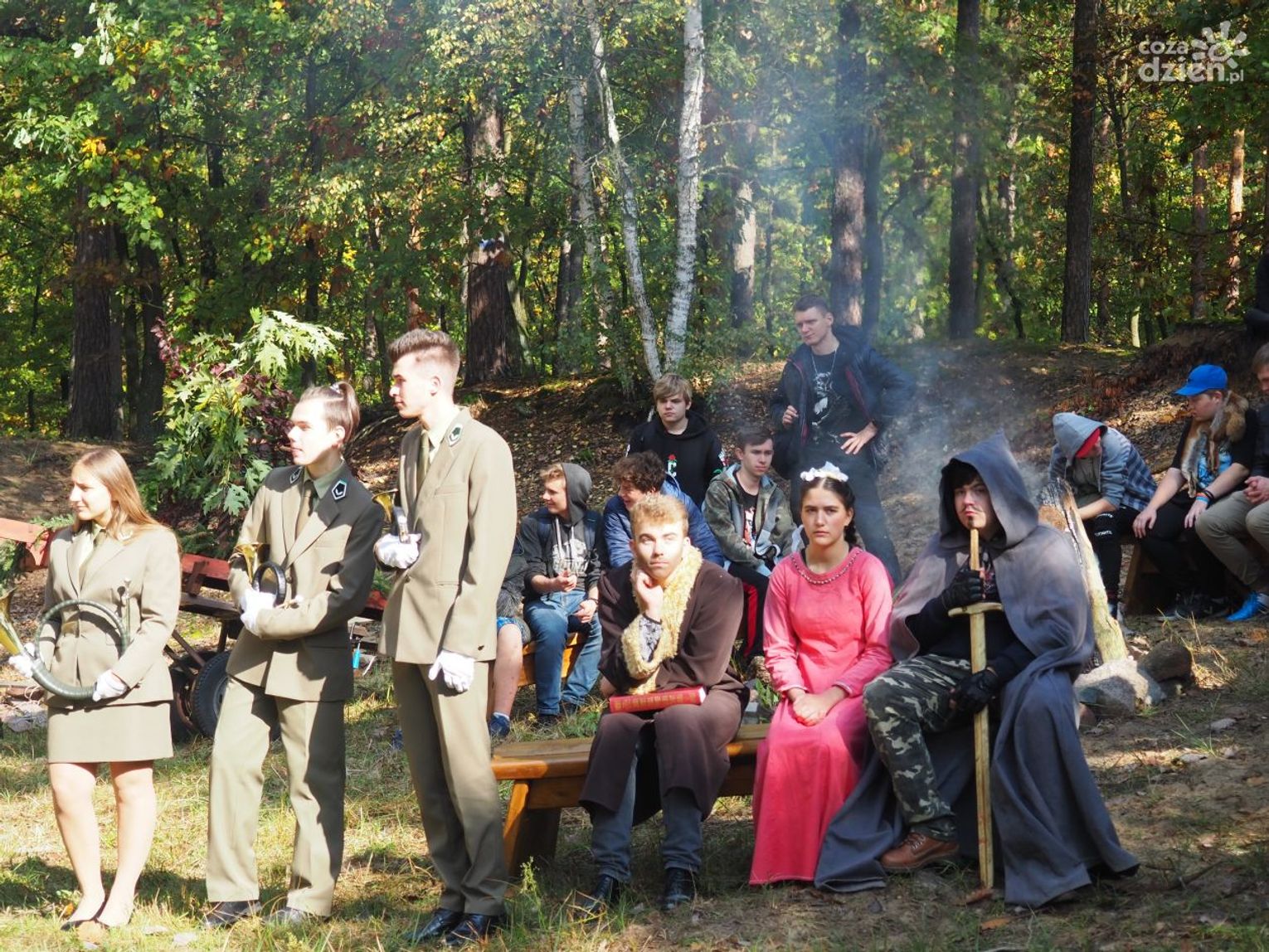 1 października o godz. 10 wyruszył z placu szkolnego niezwykły korowód. Na czele pochodu z pocztem sztandarowym szedł patron szkoły Jan Kochanowski z towarzyszącą mu renesansową damą dworu, rycerzami, młynarzem, a nawet Ali Babą. Nad kolorowym orszakiem górował niesionym na tronie w drewnianej lektyce Sylwan wraz ze świtą wyposażoną w poroża, odzianą w skóry dzikich zwierząt.