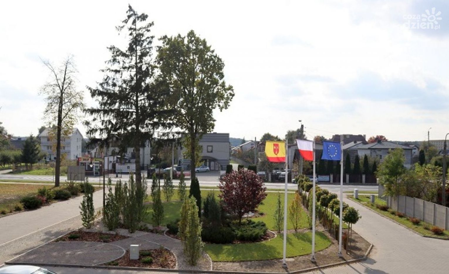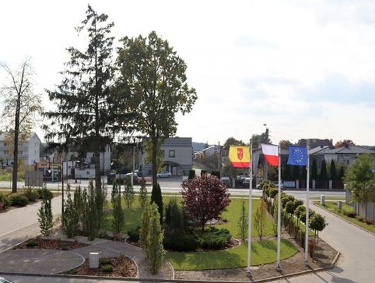 Wykwalifikowana firma zaprojektowała kawałek zielonej przestrzeni przed siedzibą urzędu. Projekt uwzględnił dotychczasową roślinność, wzbogacając ją jednak o inne krzewy iglaste i różnorodne kwiaty, w tym hortensje. Wiosną, przy masztach i wzdłuż wjazdu, pojawi się charakterystyczna dla wiejskiego krajobrazu „kwietna łąka”.
