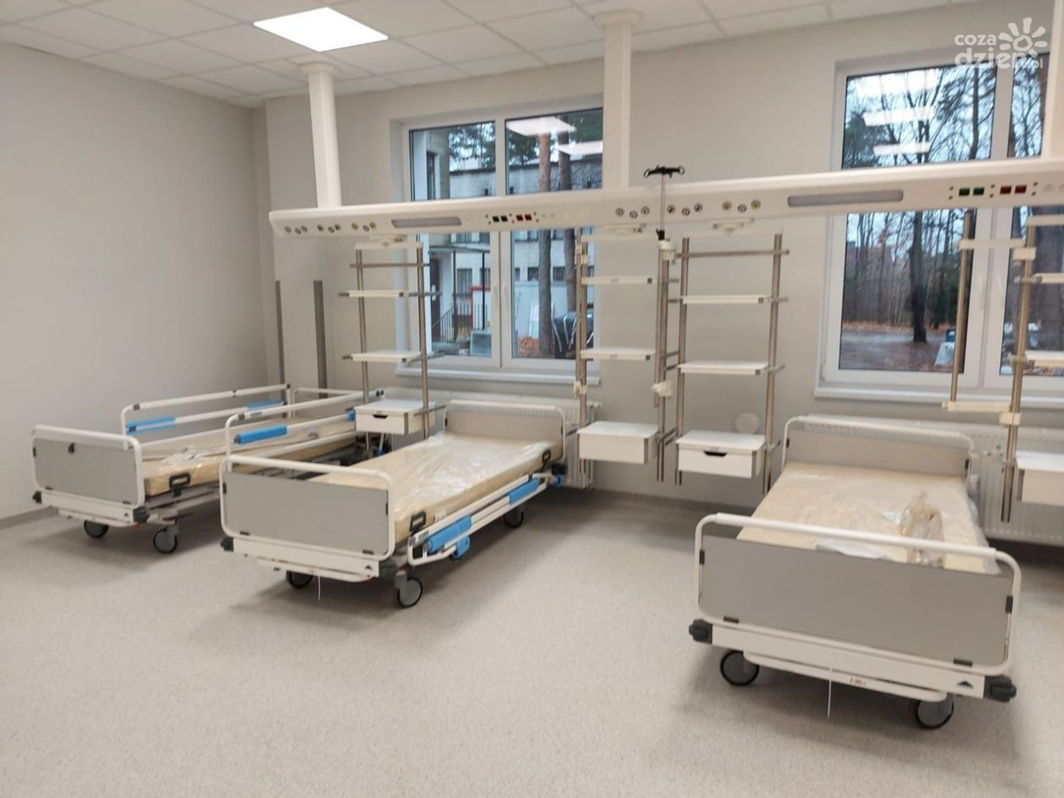 Na każdym z oddziałów jest 10 dwuosobowych sal z własnymi łazienkami dla pacjentów, wyposażonych w nowoczesne, sterowane elektrycznie łóżka. Gotowy jest blok operacyjny i pomieszczenia dla najnowocześniejszego 80-rzędowego tomografu komputerowego oraz cyfrowego aparatu rentgenowskiego. W podziemiach budynku wszystko jest przygotowane dla poradni specjalistycznych oraz nocnej i świątecznej opieki lekarskiej. Nie brakuje też pomieszczeń oraz zaplecza dla personelu medycznego.