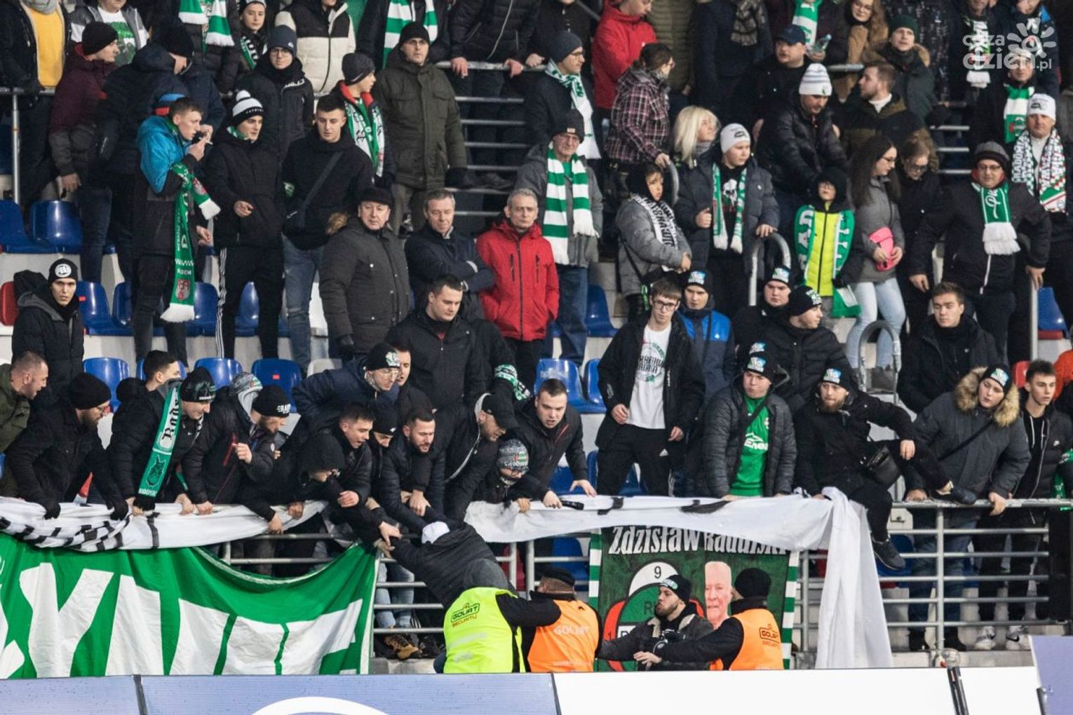- Kibice protestowali bowiem przeciwko prezydentowi miasta, Radosławowi Witkowskiemu oraz zarządcom MOSiRu, z którym radomska społeczność miała już rozmaite problemy - czytamy na portalu - Wobec obraźliwych transparentów (Witkowski, ty ku*** czy ci nie wstyd?), próbowała interweniować ochrona, chcąca ściągnąć baner z trybun. Efektem była scysja między służbami porządkowymi a kibicami.