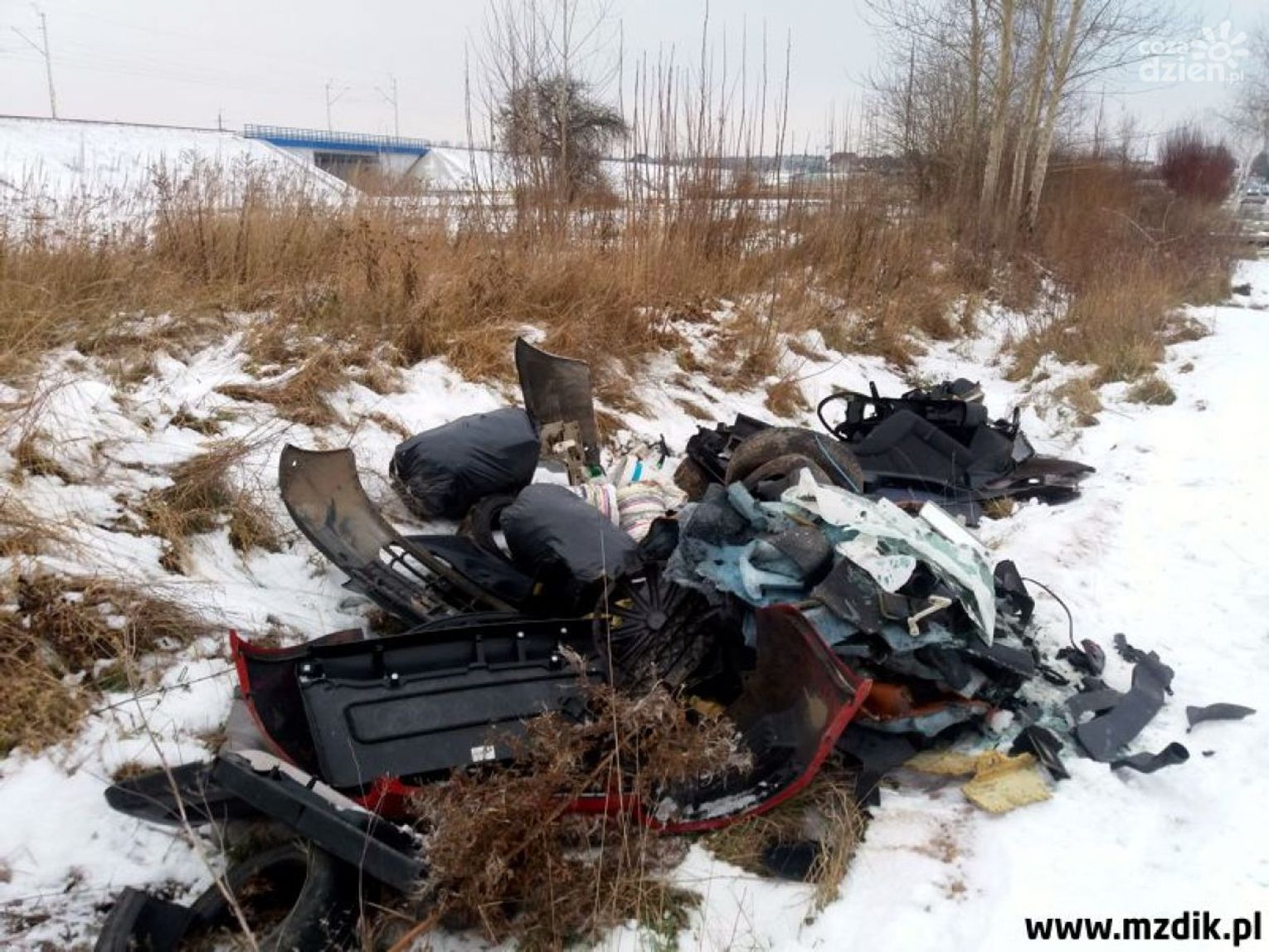 "Jadąc ulicą Energetyków, trzeba było dawniej pokonać tam przejazd kolejowy. Spółka PKP PLK zbudowała w zeszłym roku nowy odcinek, przebiegający pod torami. Na starym fragmencie jezdni ruch kołowy praktycznie zamarł, co wykorzystał ostatnio jakiś - nazwijmy go tutaj eufemistycznie "uprzejmy jegomość", by nie używać dosadniejszych określeń - który opróżnił sporą ciężarówkę resztek samochodowych, między innymi opony, zderzaki, filtry, fotele oraz inne elementy. Innymi słowy - wszystko to, czego nie można oddać ani do PSZOK-u, ani do selekcji" - informuje na swoim profilu MZDiK.