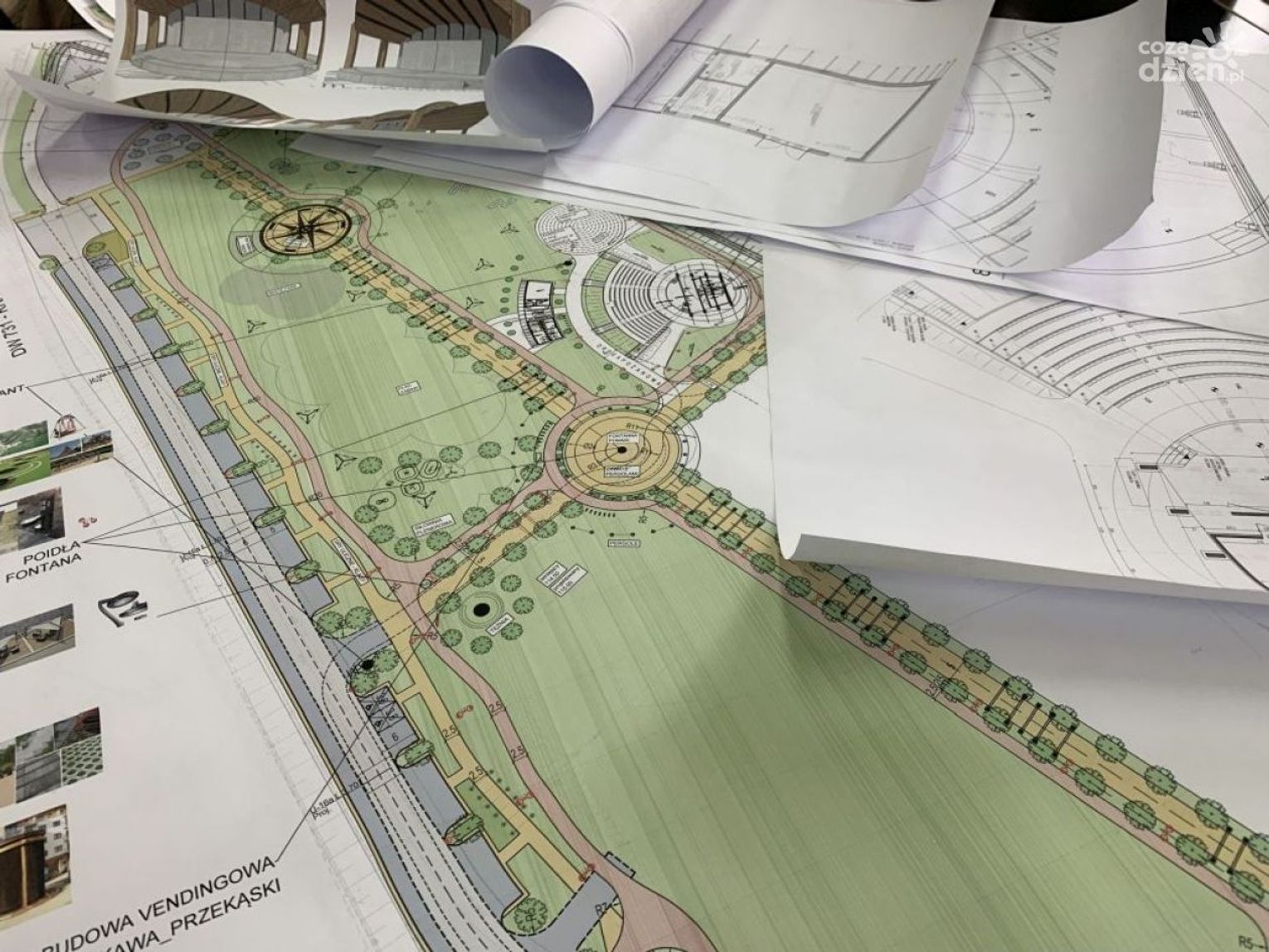 Proces projektowy obejmuje przygotowanie projektów budowlanych i architektonicznych różnych elementów m.in. amfiteatru, budynku socjalnego, ciągów samochodowych, pieszych i rowerowych, oświetlenia parkowego i ulicznego, likwidację oraz kablowanie linii średniego napięcia, budowę stacji transformatorowej, budowę sieci kanalizacyjnej i wodnej, placu zabaw, tężni, skateparku, grillowiska, urządzenia zieleni i małej architektury.