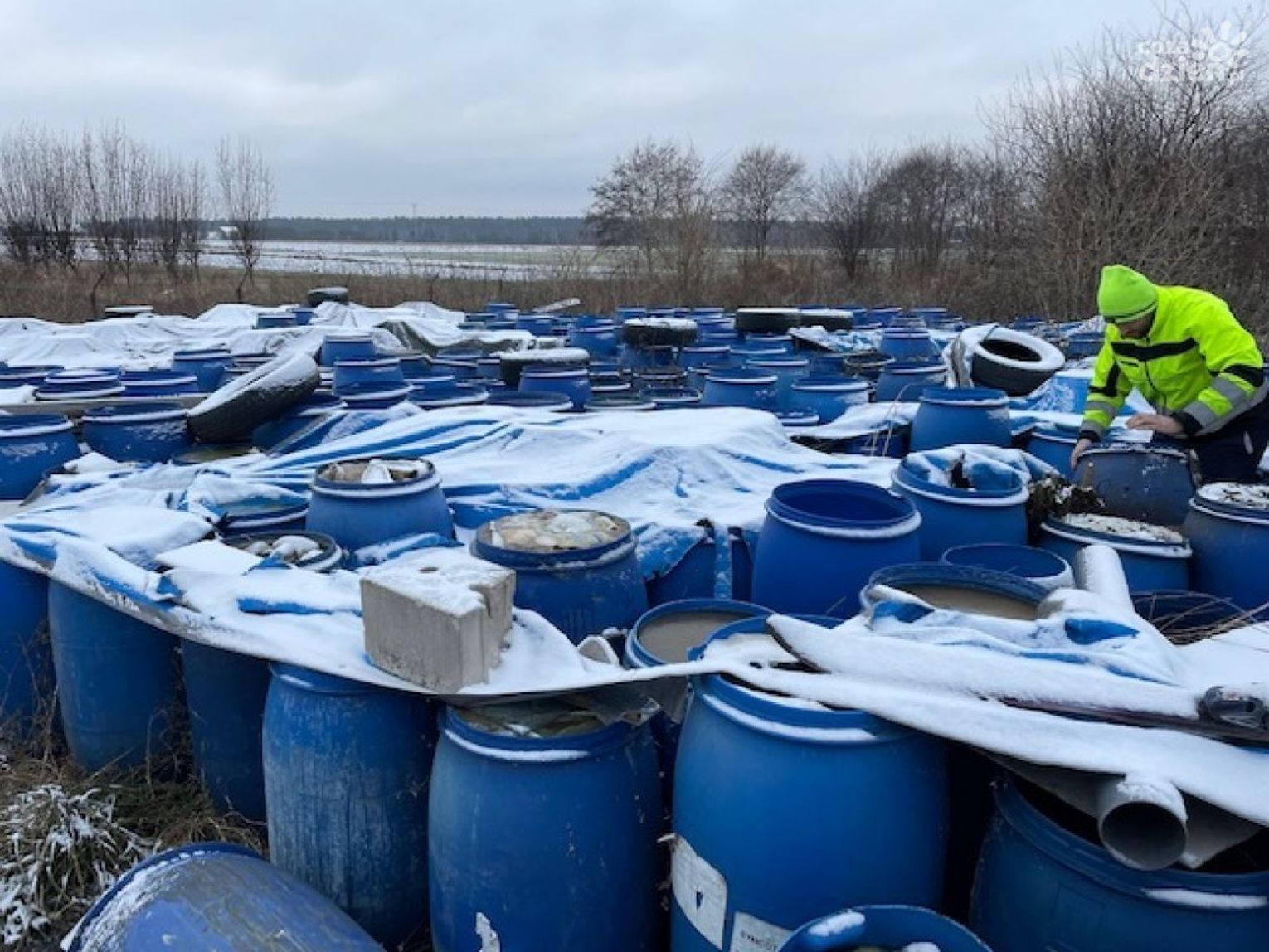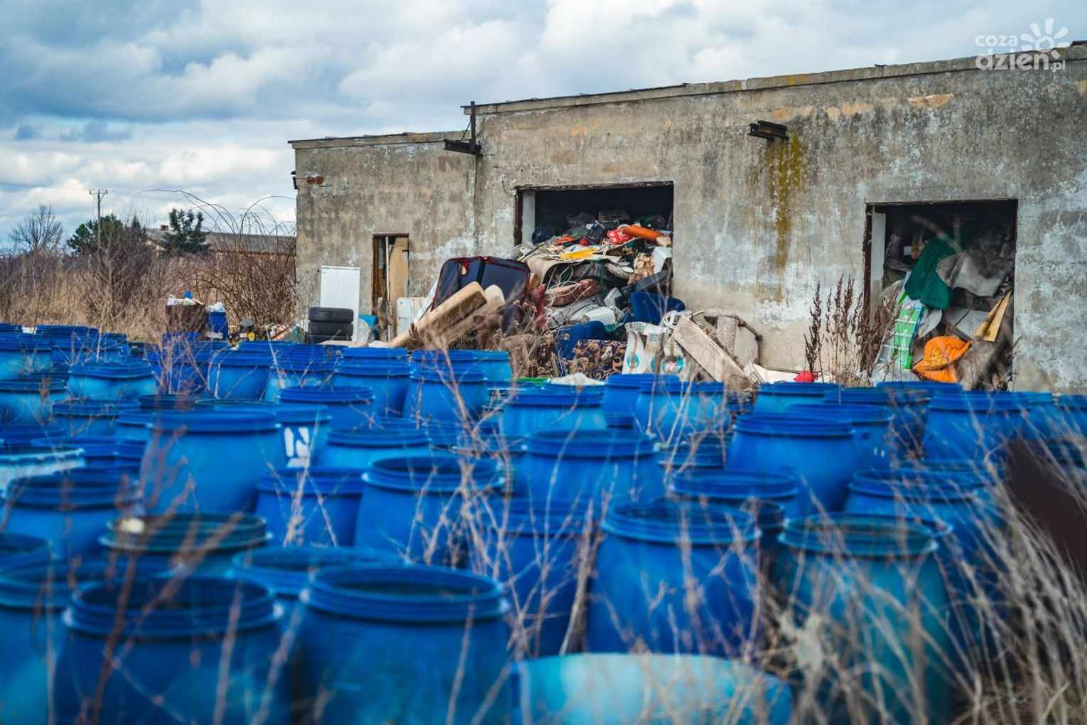 Ustalono, że w południowej części działki zlokalizowano około 400 beczek plastikowych o pojemności 80 – 120 litrów zawierających niezidentyfikowane odpady (prawdopodobnie garbarskie). Ponadto, w budynku znajdującym się na terenie działki ujawniono odpady w postaci tekstyliów i tworzyw sztucznych oraz w kilku miejscach odpady z gruzu betonowego i ceramiki.