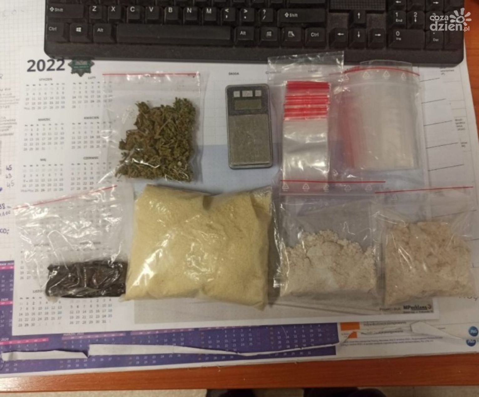 Policjanci od dłuższego czasu sprawdzali informację o młodym mężczyźnie, który może posiadać narkotyki. Połączone siły funkcjonariuszy z Białobrzegów i Grójca doprowadziły ich do mieszkania należącego do 24-latka. W pomieszczeniach funkcjonariusze białobrzeskiej policji ujawnili ponad 300 gram mefedronu,blisko 50 g haszyszu i marihuany.