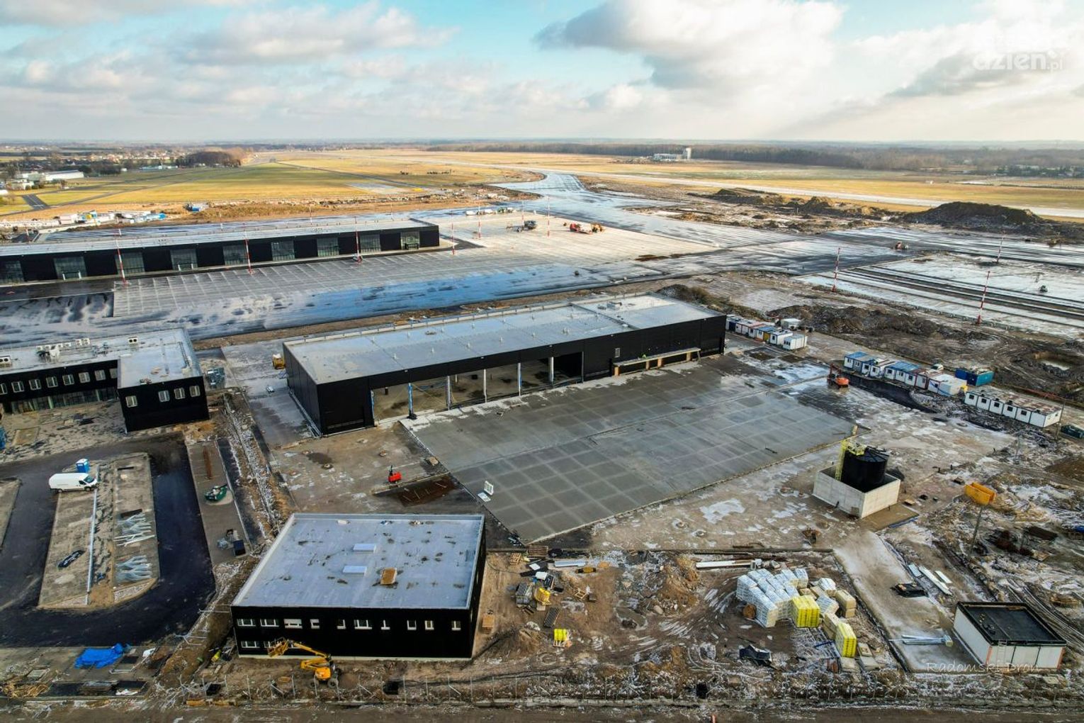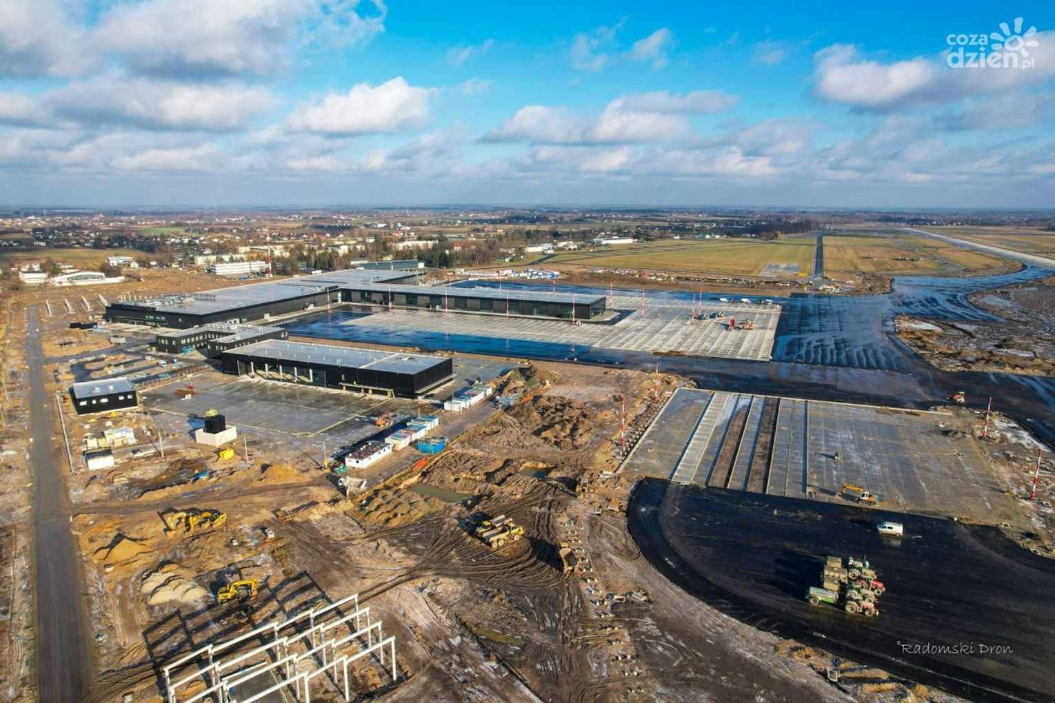Prawie gotowy jest już terminal na radomskim lotnisku. Aktualnie większość prac toczy się na zewnątrz. Prac jest jeszcze sporo, jednak idą one zgodnie z harmonogramem. Planowane rozpoczęcie działalności podwarszawskiego portu to 2022 r.