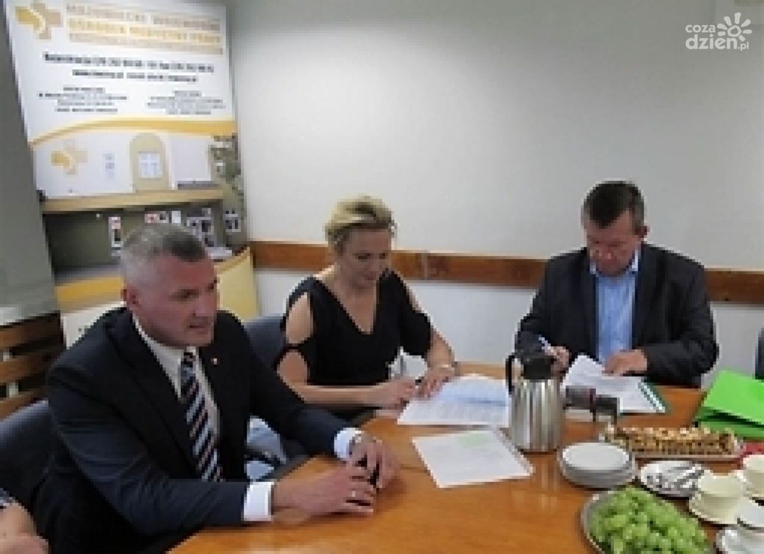 W uroczystym podpisaniu umowy na realizację inwestycji, której wykonawcą będzie firma Czar-Bud Usługi Remontowo - Budowlane, wzięli udział: członek zarządu województwa mazowieckiego Rafał Rajkowski, dyrektor MWOMP Agnieszka Sulkowska, wiceprzewodnicząca Sejmiku Województwa Mazowieckiego - Bożenna Pacholczak, a także radny Zbigniew Gołąbek oraz kierownik Oddziału MWOMP w Radomiu Paweł Wdówik.