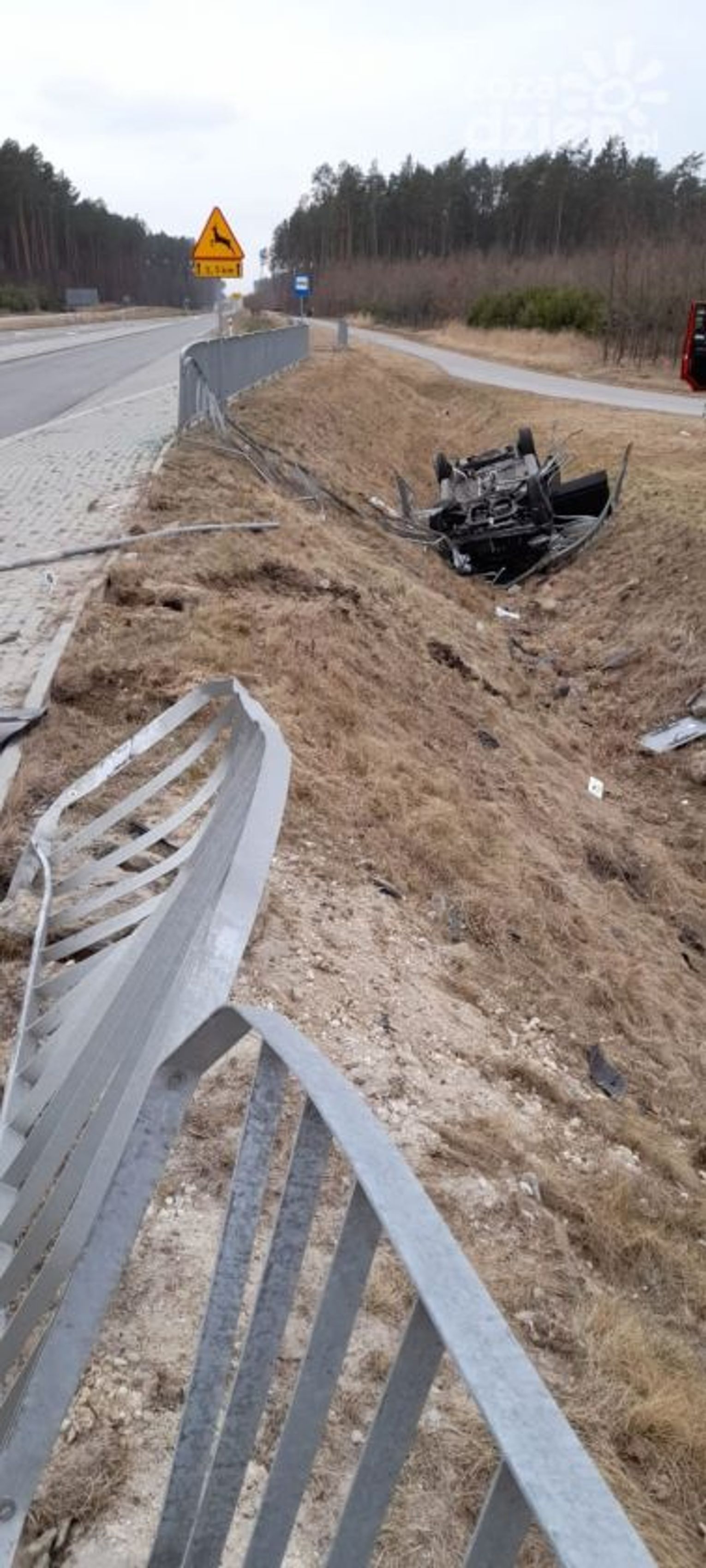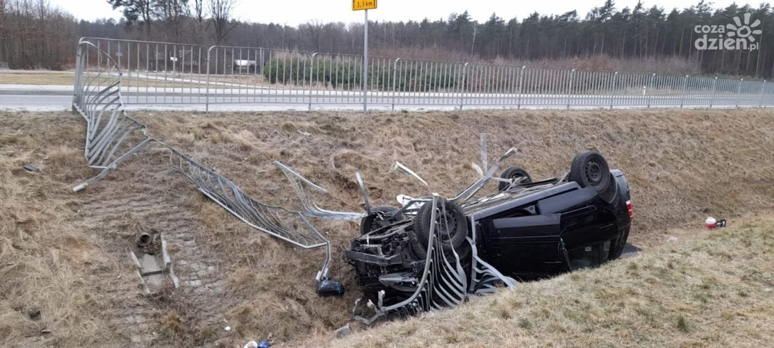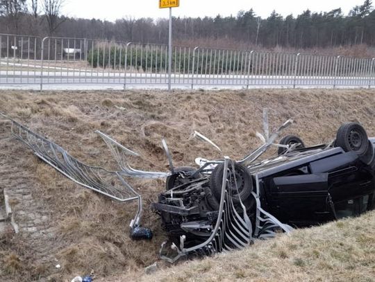 Samochód wypadł z jezdni i wpadł do rowu. Jak informują strażacy kierowca był nieprzytomny i zakleszczony w pojeździe.