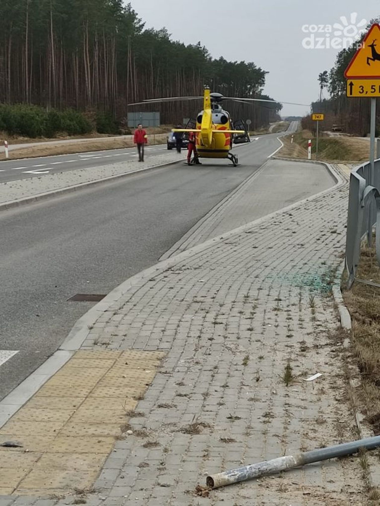 Na miejscu wylądował helikopter Lotniczego Pogotowia Ratunkowego, który zabrał poszkodowanego do szpitala.