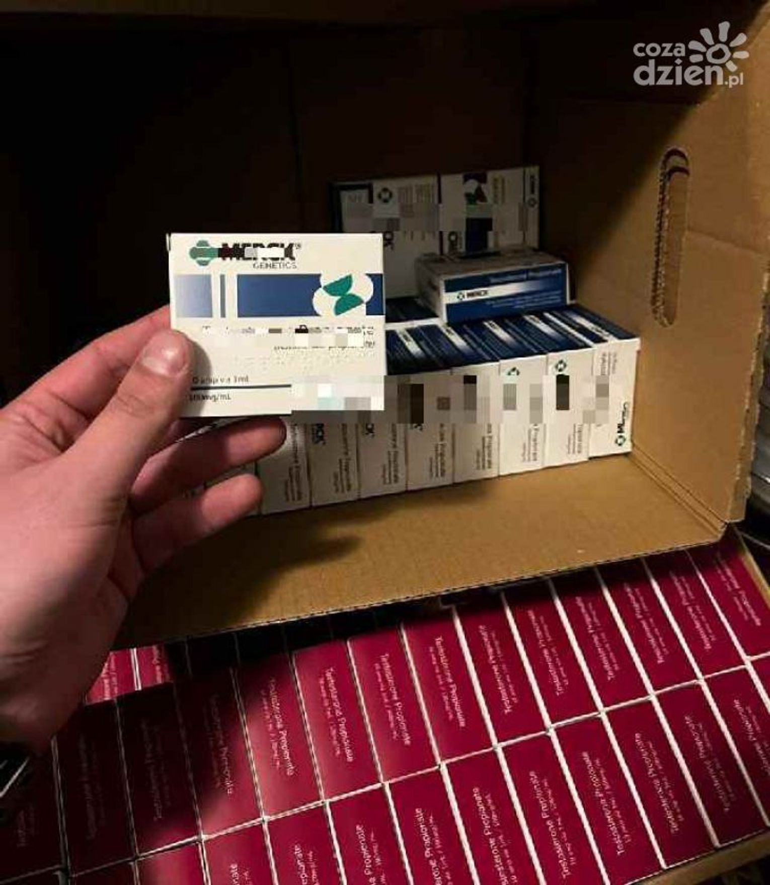 Policjanci zatrzymali dwóch obywateli Białorusi w wieku 41 i 32 lata. Zabezpieczyli też kilkanaście kartonów i plastikowych wiader, w których znajdowało się ponad 61 tysięcy szklanych ampułek z płynnym testosteronem. Funkcjonariusze zabezpieczyli leki, przeprowadzili oględziny. Wartość rynkowa zabezpieczonych substancji szacowana jest na ponad 850 tysięcy złotych.