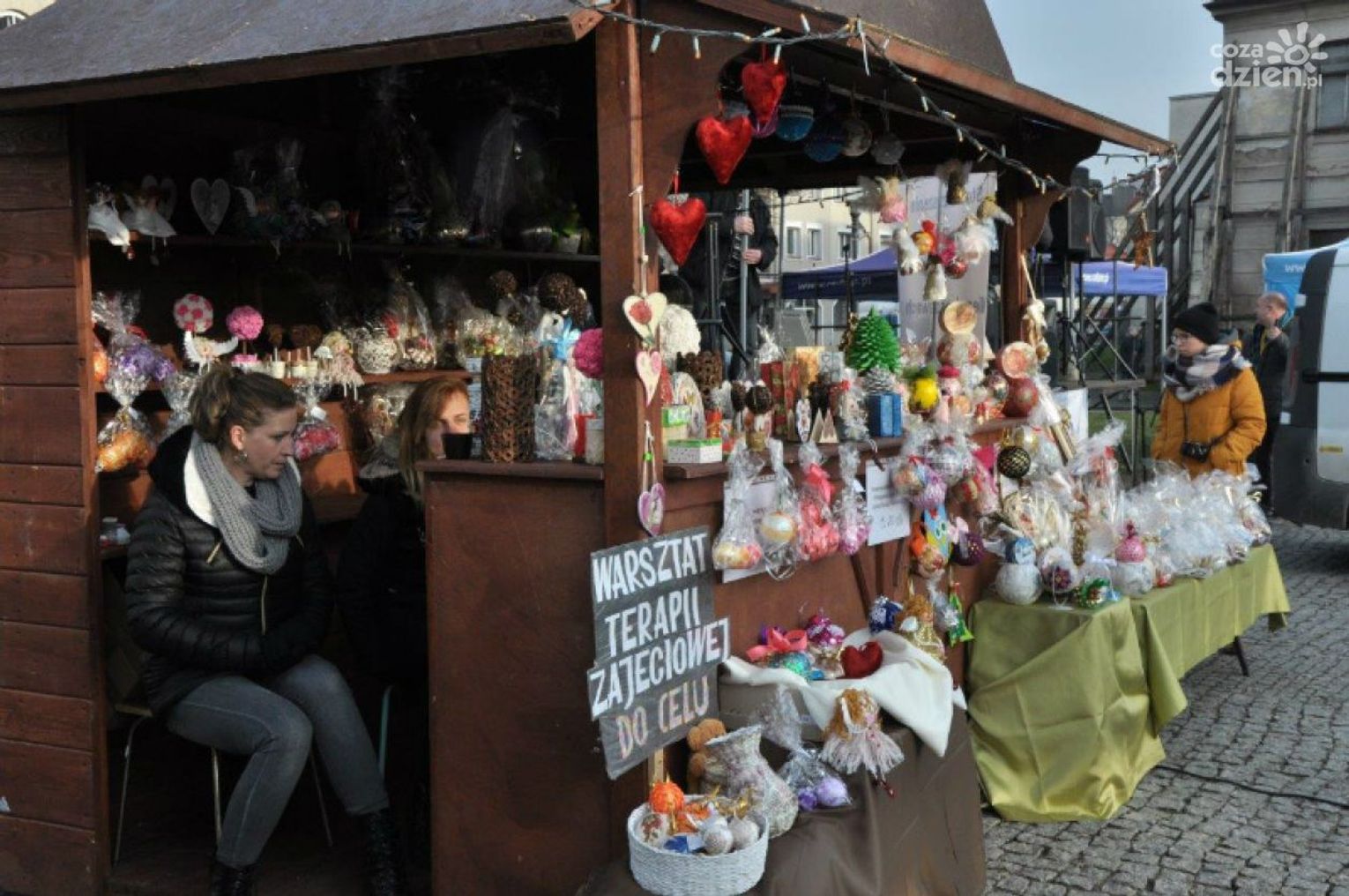 Wystawcy biorący udział w kiermaszu oferują m.in. żywe i sztuczne choinki, ozdoby i stojaki do nich, stroiki, lampiony i inne dekoracje, zabawki i świąteczne upominki, w tym wyroby z filcu, rękodzieło (wykonane techniką decoupage, abakan), naturalne mydła i kosmetyki, ręcznie wykonywaną biżuterię, ale także różnego rodzaju sery, ręcznie produkowane słodycze i sześć odmian miodu. Można spróbować świątecznego bigosu, zupy grzybowej, pierników, a także aromatycznych herbat i grzanego wina.