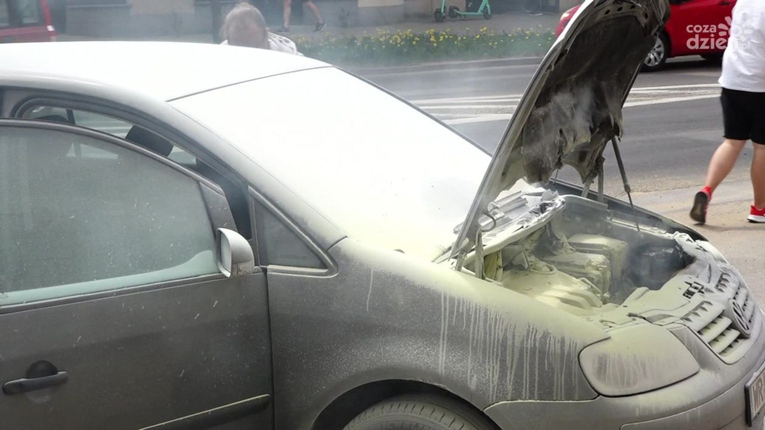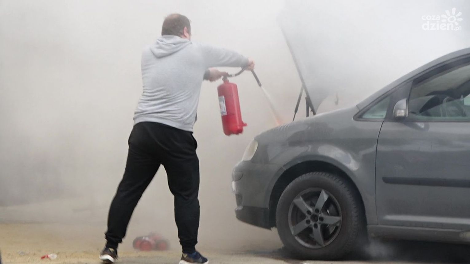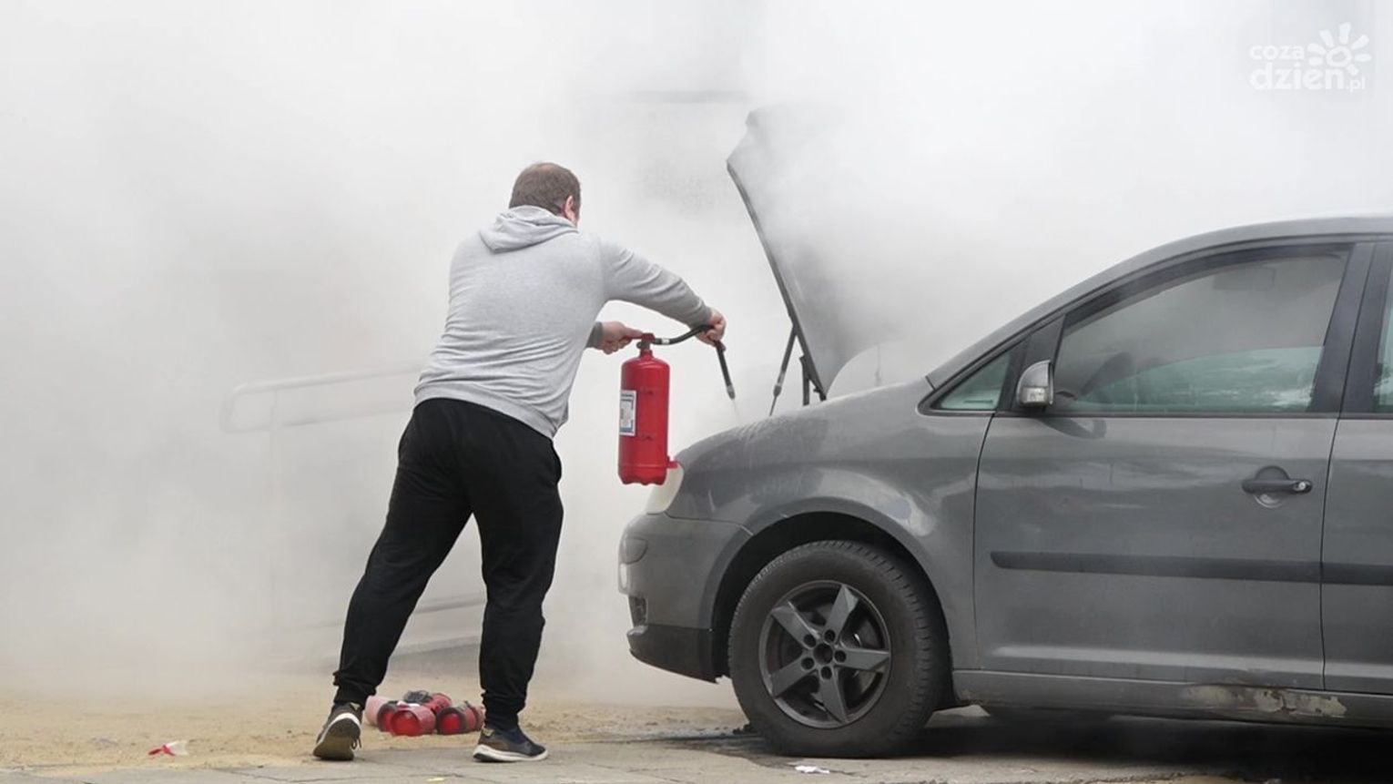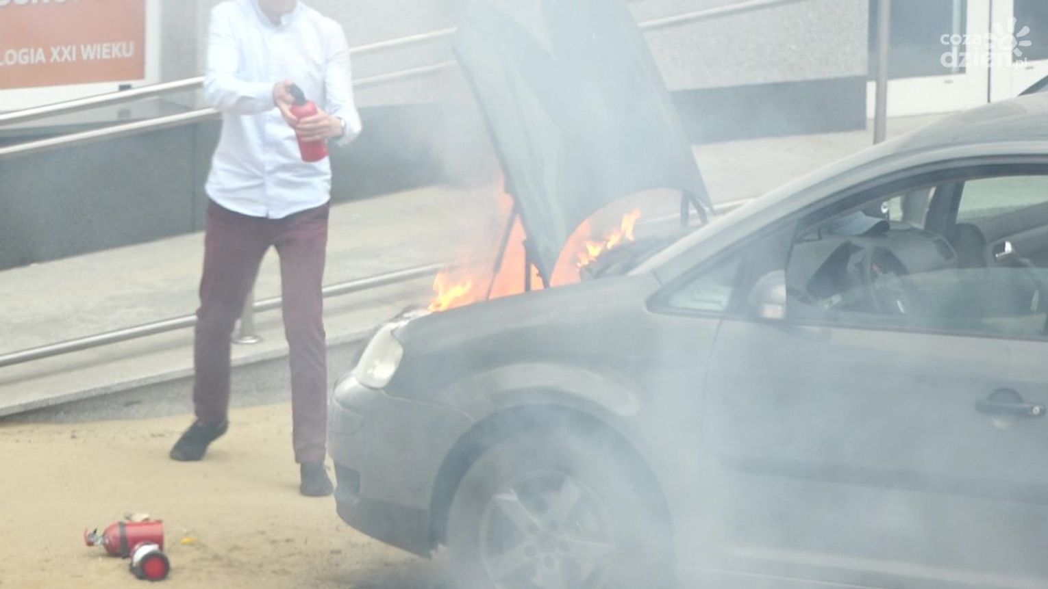 Do zdarzenia doszło w czwartek, 12 maja przed godz. 13 na ul. Okulickiego. Kierowca auta osobowego, które się zapaliło, użył samochodowej gaśnicy, ale nie przyniosło to żadnego rezultatu. Kolejno zatrzymywali się inni kierowcy, którzy użyczali swoich gaśnic, ale ogień był bardzo trudny do opanowania. Udział swój mieli także pracownicy okolicznych firm, którzy przybiegli z dużymi gaśnicami. Dopiero wtedy udało się opanować groźnie wyglądającą sytuację.
