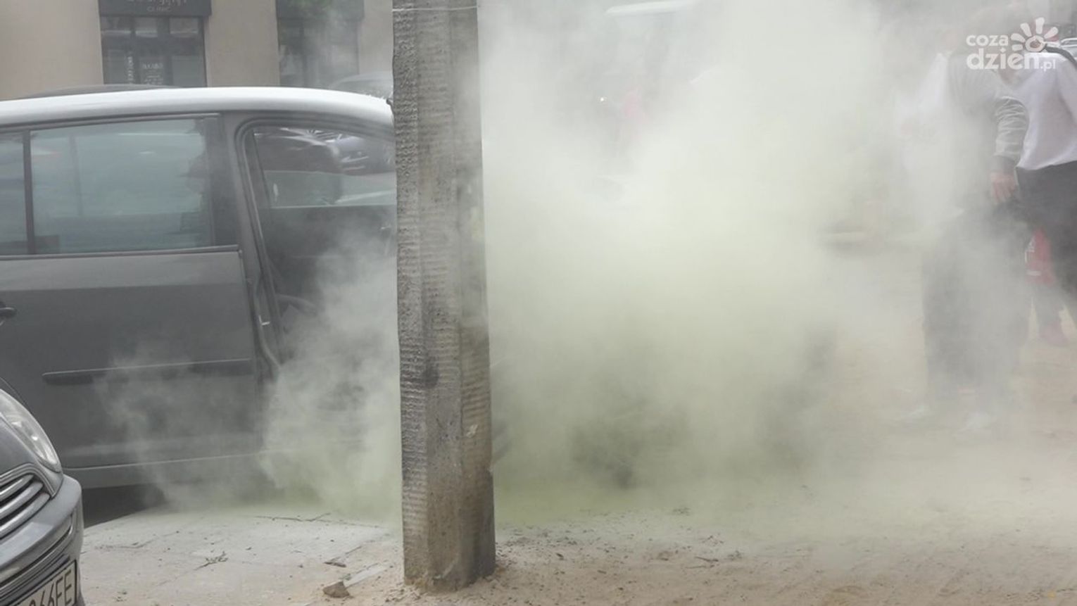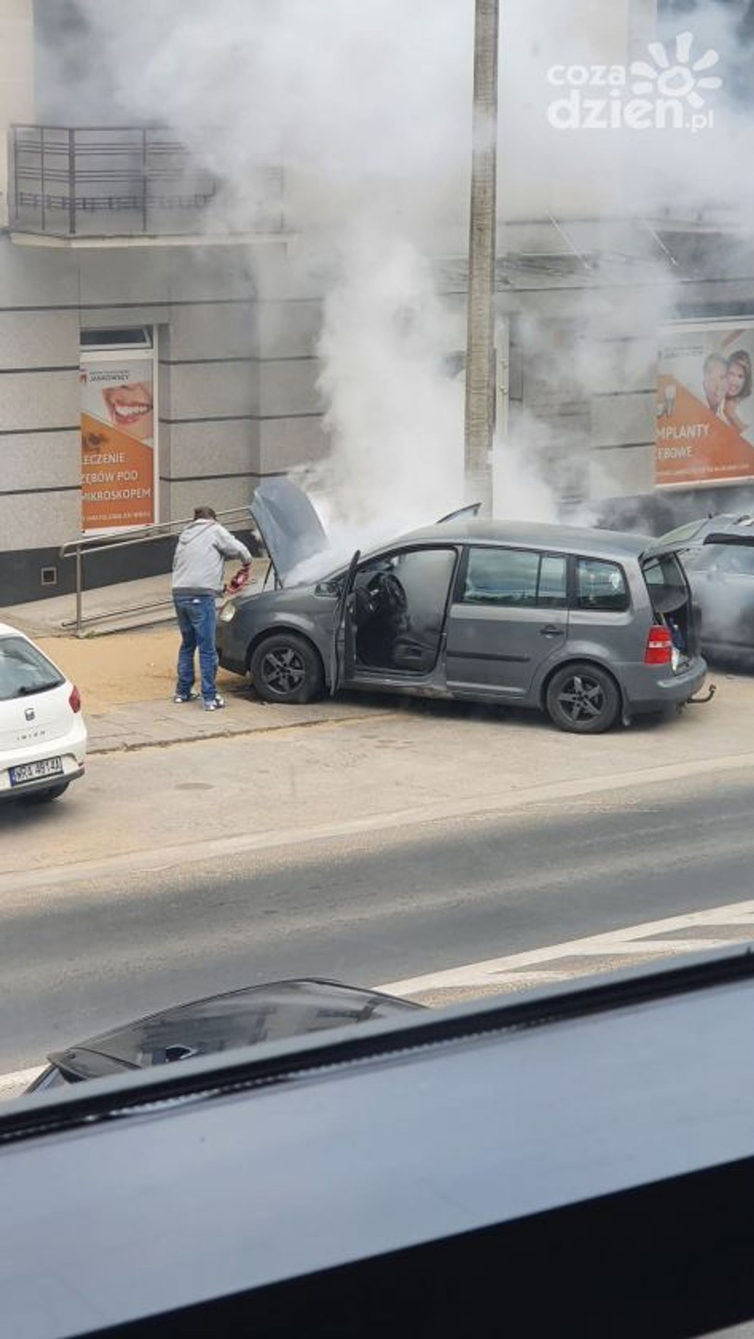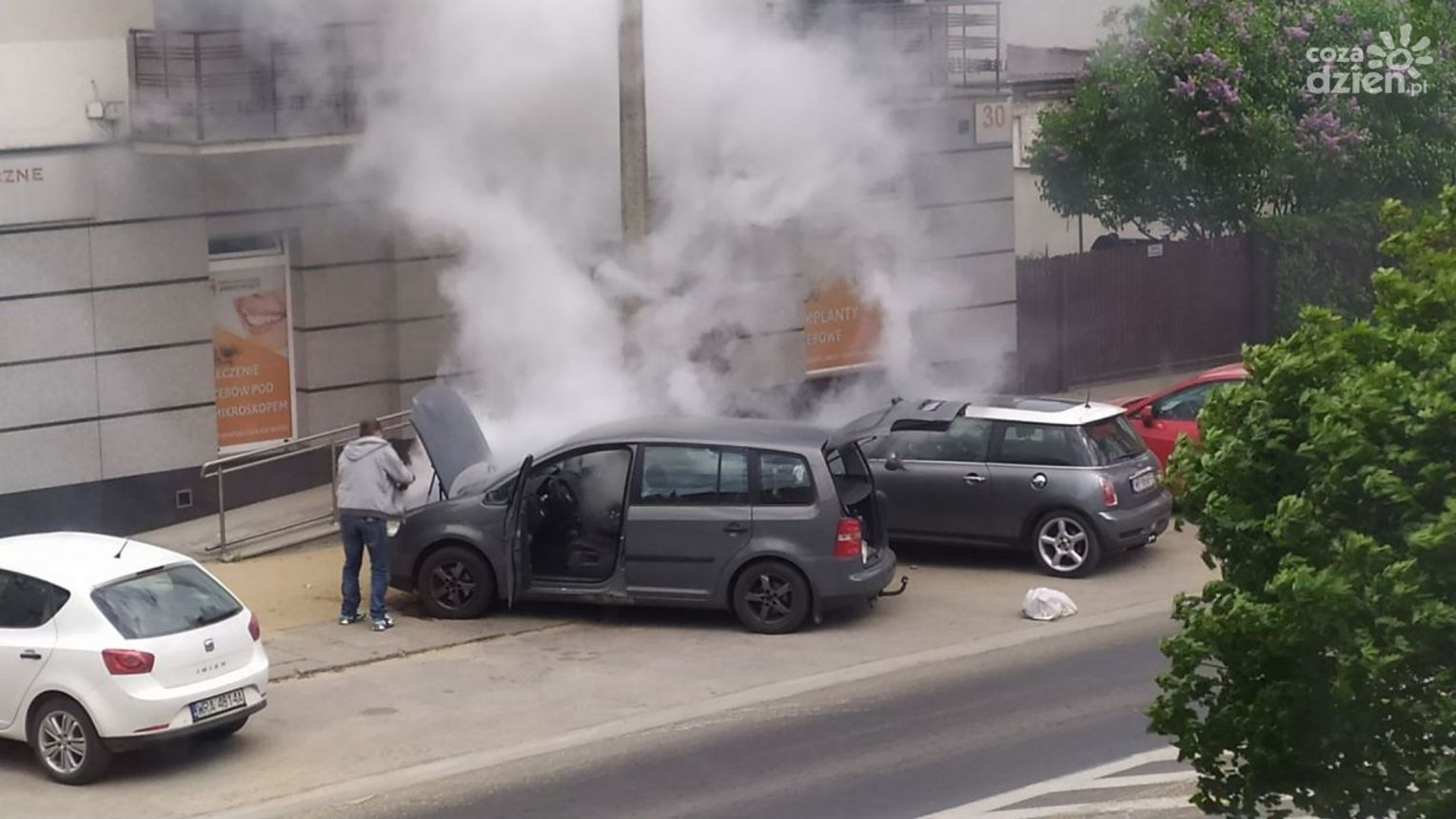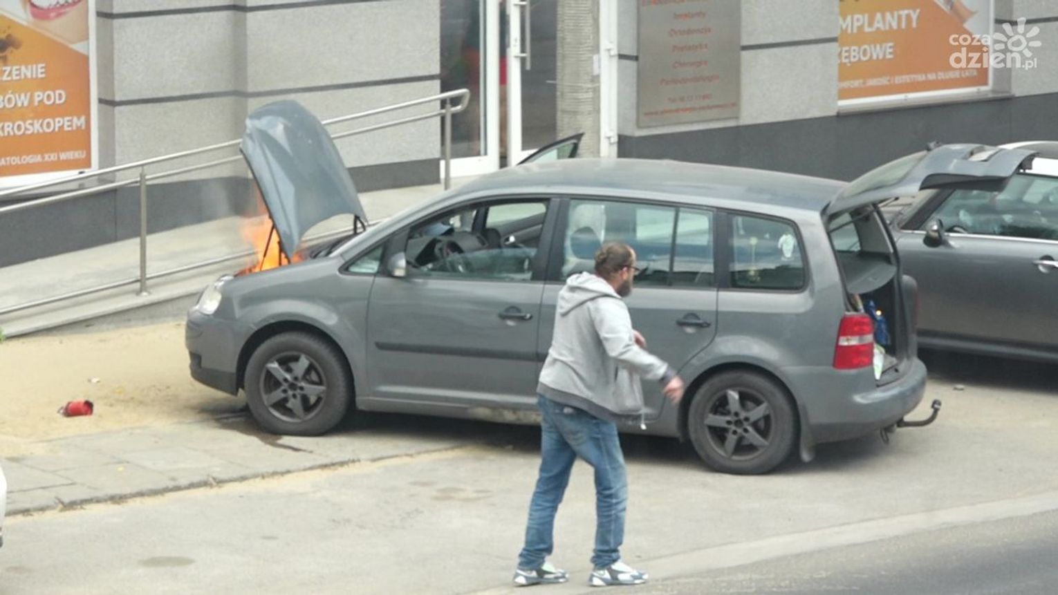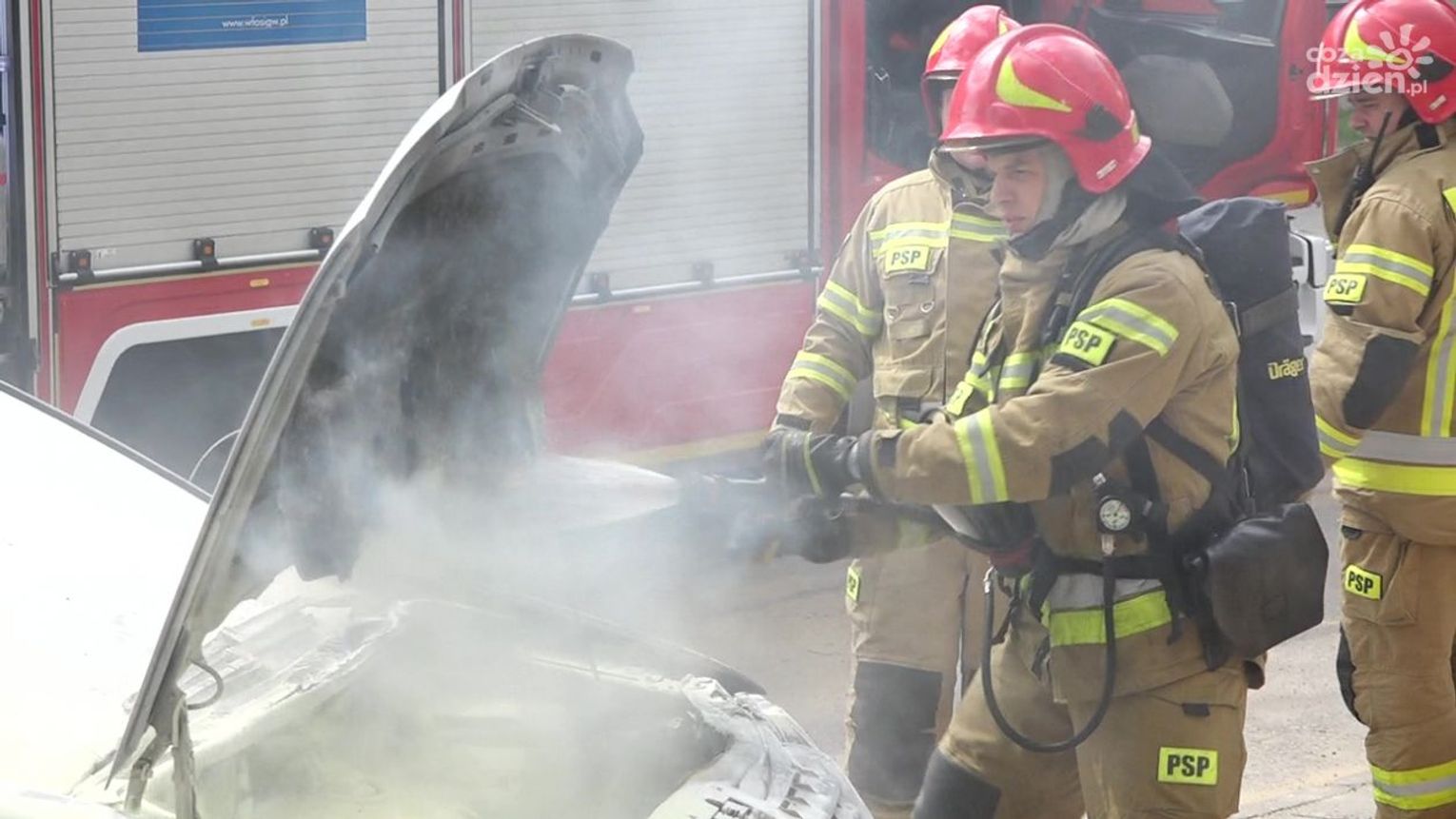 Do zdarzenia doszło w czwartek, 12 maja przed godz. 13 na ul. Okulickiego. Kierowca auta osobowego, które się zapaliło, użył samochodowej gaśnicy, ale nie przyniosło to żadnego rezultatu. Kolejno zatrzymywali się inni kierowcy, którzy użyczali swoich gaśnic, ale ogień był bardzo trudny do opanowania. Udział swój mieli także pracownicy okolicznych firm, którzy przybiegli z dużymi gaśnicami. Dopiero wtedy udało się opanować groźnie wyglądającą sytuację.