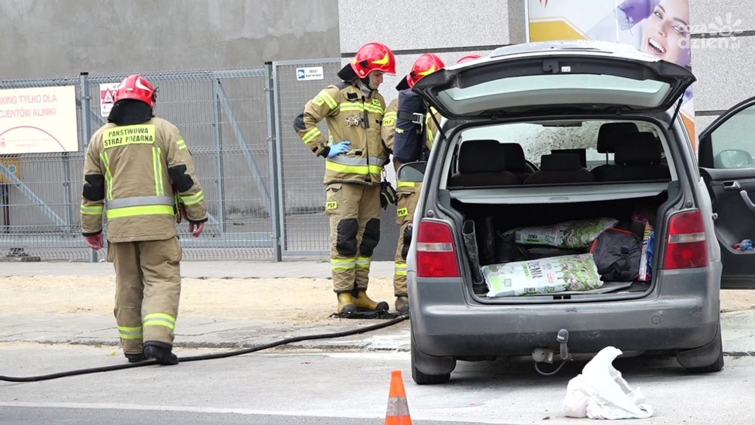 Na miejsce przyjechał zastęp strażaków, który dogaszał jeszcze auto i zabezpieczył teren.