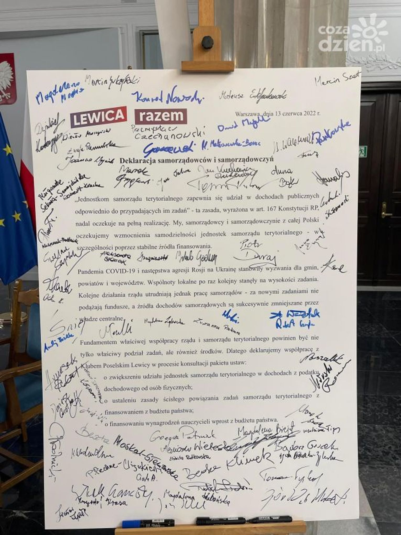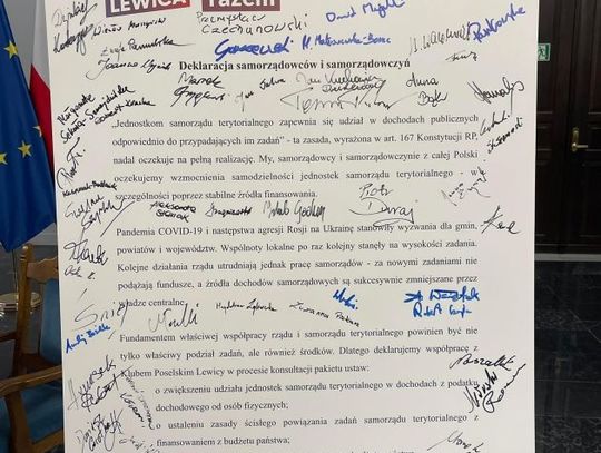 W dokumencie zadeklarowano ponadto współpracę z klubem Lewicy w procesie konsultacji pakietu ustaw m.in. o zwiększeniu udziału jednostek samorządu terytorialnego w dochodach z podatku dochodowego od osób fizycznych, o ustaleniu zasady ścisłego powiązania zadań samorządu terytorialnego z finansowaniem z budżetu państwa, a także o finansowaniu wynagrodzeń nauczycieli wprost z budżetu państwa.