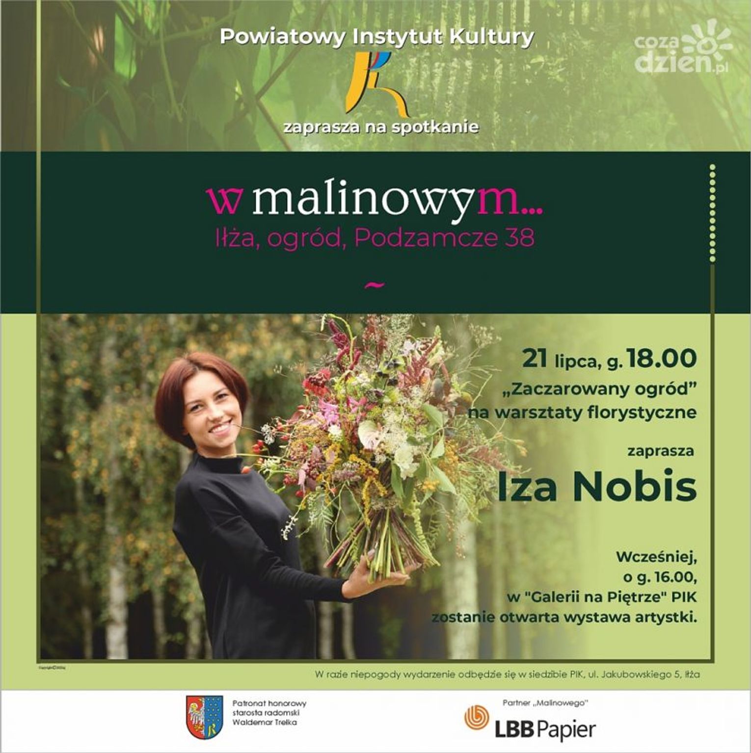 Wstęp na wydarzenia - wolny. W razie niepogody wydarzenie odbędzie się w siedzibie PIK, ul. Jakubowskiego 5, Iłża. Na warsztaty obowiązują zapisy. Zgłoszenia pod adresem [email protected] przyjmowane są do środy (20 lipca) do godz. 16.
