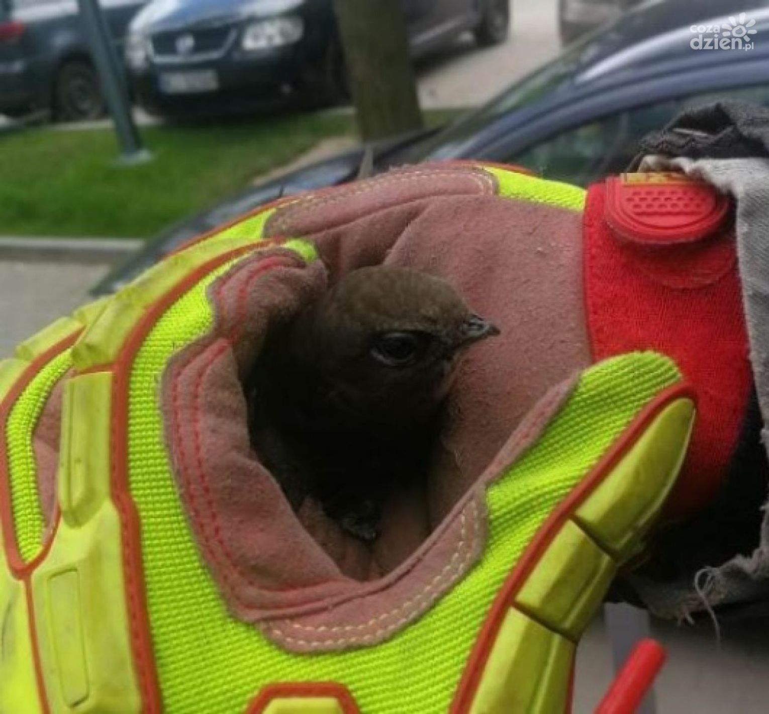 Po pierwsze: upewnij się czy pisklę ma widoczne rany. Może być nieporadne albo nawet nie jest w stanie chodzić, lecz jeśli jest bardzo młode, to jest to całkowicie naturalne. Jeśli krwawi lub ma widoczne obrażenia, wówczas należy skontaktować się ze Strażą Miejską lub weterynarzem.