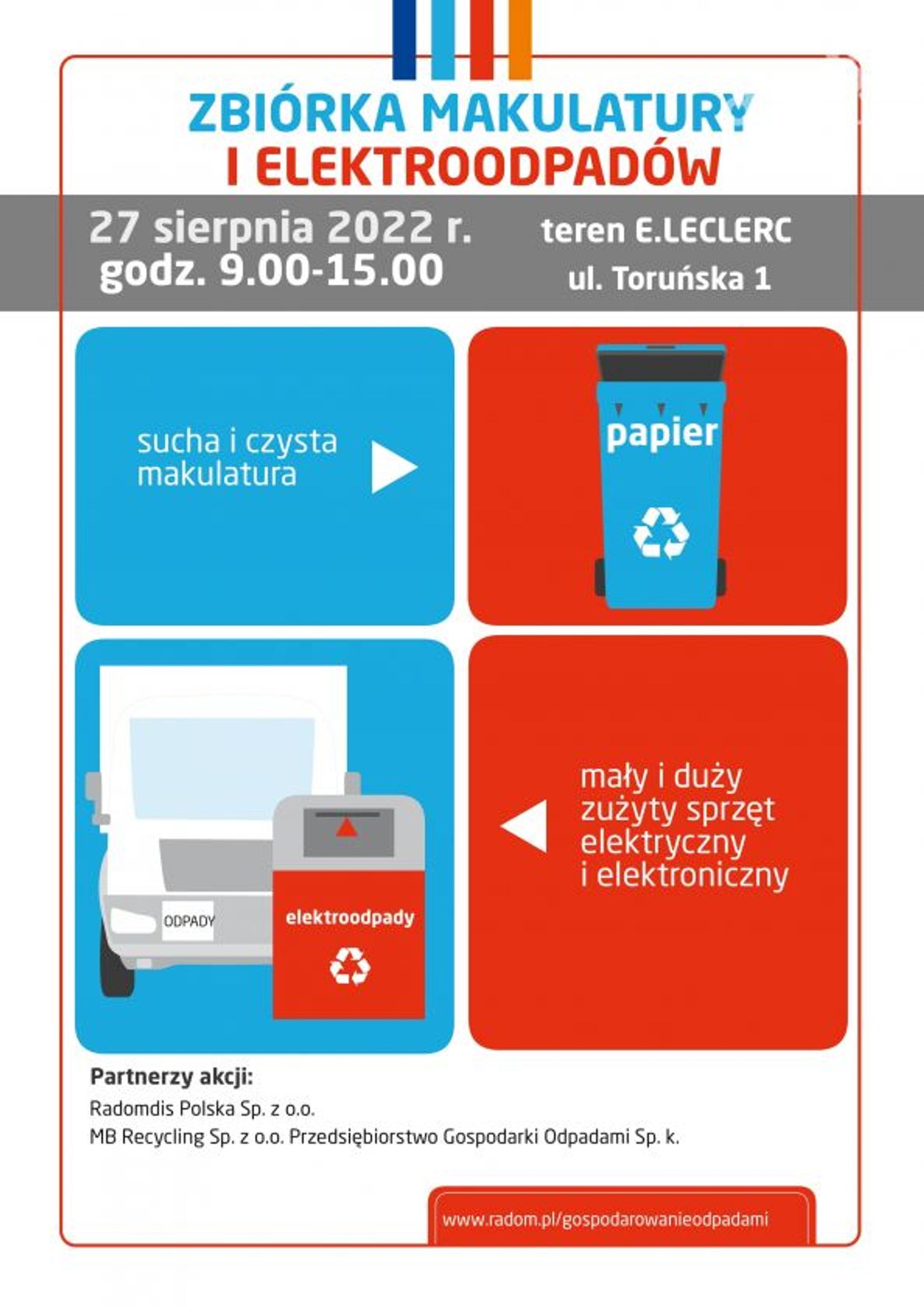 Partnerami Gminy Miasta Radomia w organizacji wydarzenia są: Radomdis Polska Sp. z o.o., MB Recycling Spółka z ograniczoną odpowiedzialnością Przedsiębiorstwo Gospodarki Odpadami Spółka komandytowa.