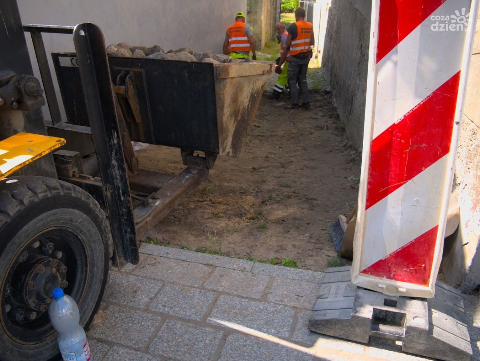 Zejście z Rynku Wielkiego na "stoczek" to jedno z niewielu miejsc, gdzie zachował się stary bruk. Aktualnie trwa demontaż starej nawierzchni uliczki. Prace budowlane potrwają około miesiąca. Zakres robót obejmuje odtworzenie nawierzchni