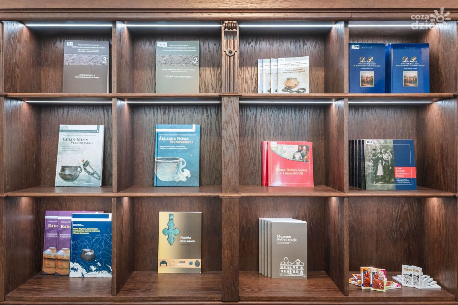 To przede wszystkim niemal kronikarski zapis fotograficzny remontu budynków i poszczególnych etapów aranżacji wystawy „Muzeum Historii Radomia” (autorem większości zdjęć jest Sebastian Fituch), którą można oglądać od połowy sierpnia. Wydawnictwo otwiera obszerny artykuł Piotra Rogólskiego, będący zarówno syntetycznym przedstawieniem dziejów dwóch barokowych kamienic od stuleci zdobiących Miasto Kazimierzowskie, jak i analizą ich zmieniającej się (chociaż niezbyt gruntownie) architektury. Kolejny tekst to syntetyczna, obudowana historycznym kontekstem i uzupełniona wybraną bibliografią merytoryczna koncepcja funkcjonowania ekspozycji autorstwa Adama Duszyka, który wymienia m.in. osiem - jego zdaniem - najważniejszych wydarzeń, wokół których zbudowana jest narracja wystawy. To, w kolejności chronologicznej: nieformalna stolica Polski w czasach królewicza Kazimierza Jagiellończyka, unia wileńsko-radomska z 1401 r., konstytucja nihil novi (1505), Trybunał Skarbowy Koronny (od 1613 r.), konfederacja radomska (1767) i będąca jej konsekwencją pierwsza zsyłka polskich elit na Sybir, Republika Radomska 1918 r., Radom w Centralnym Okręgu Przemysłowym oraz mało znany, tużpowojenny epizod, czyli pierwszy protest antykomunistyczny „My chcemy światła!” zainicjowany przez młodzież liceum im. Jana Kochanowskiego.