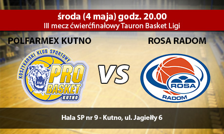 19:55 - jeśli ROSA dziś wygra, awansuje do półfinału play-off, w którym zmierzy się z Anwilem lub King Wilkami Morskimi Szczecin. W rywalizacji tych ekip na razie 2:1 dla Anwilu, czwarty mecz w Szczecinie.