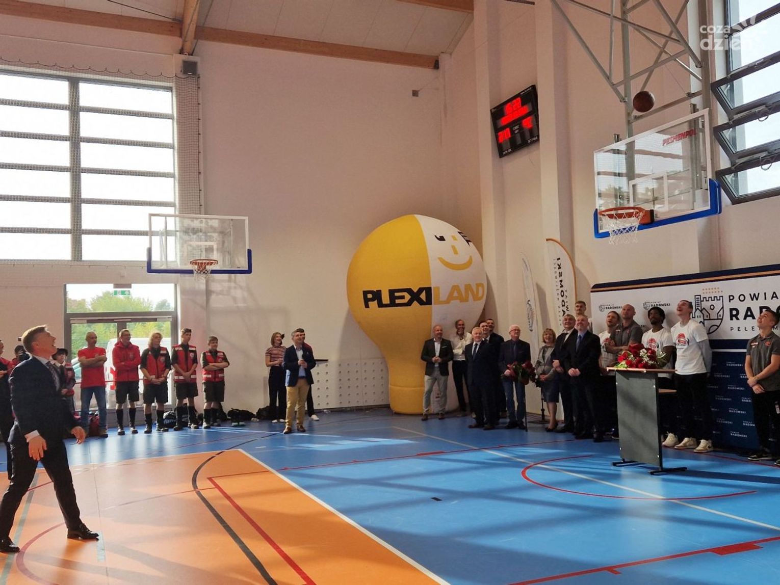 W niedzielne pochmurne i deszczowe popołudnie uroczyście otwarta została sala gimnastyczna przy Zespole Szkół. Towarzyszyli jej koszykarze drużyny Hydrotruck Radom. - Wielu powątpiewało, inni mówili, wprost, że tak duża inwestycja w tej szkole jest niepotrzebna. Jako władze powiatu uważamy jednak, że żadne pieniądze zaangażowane w oświatę nie są zmarnowane. W XXI wieku każdy powinien mieć godziwe warunki do nauki, w tym do zajęć sportowych - mówił starosta Waldemar Trelka. Jednocześnie starosta przypomniał, że sala sportowa to nie jedyna w ostatnim czasie inwestycja w tej placówce oświatowej. W lutym tego roku oddano do użytku nowoczesną wirtualną strzelnicę, która kosztowała 250 tys. zł, z czego Powiat Radomski na to zadanie pozyskał 150 tys. złotych z Ministerstwa Obrony Narodowej.