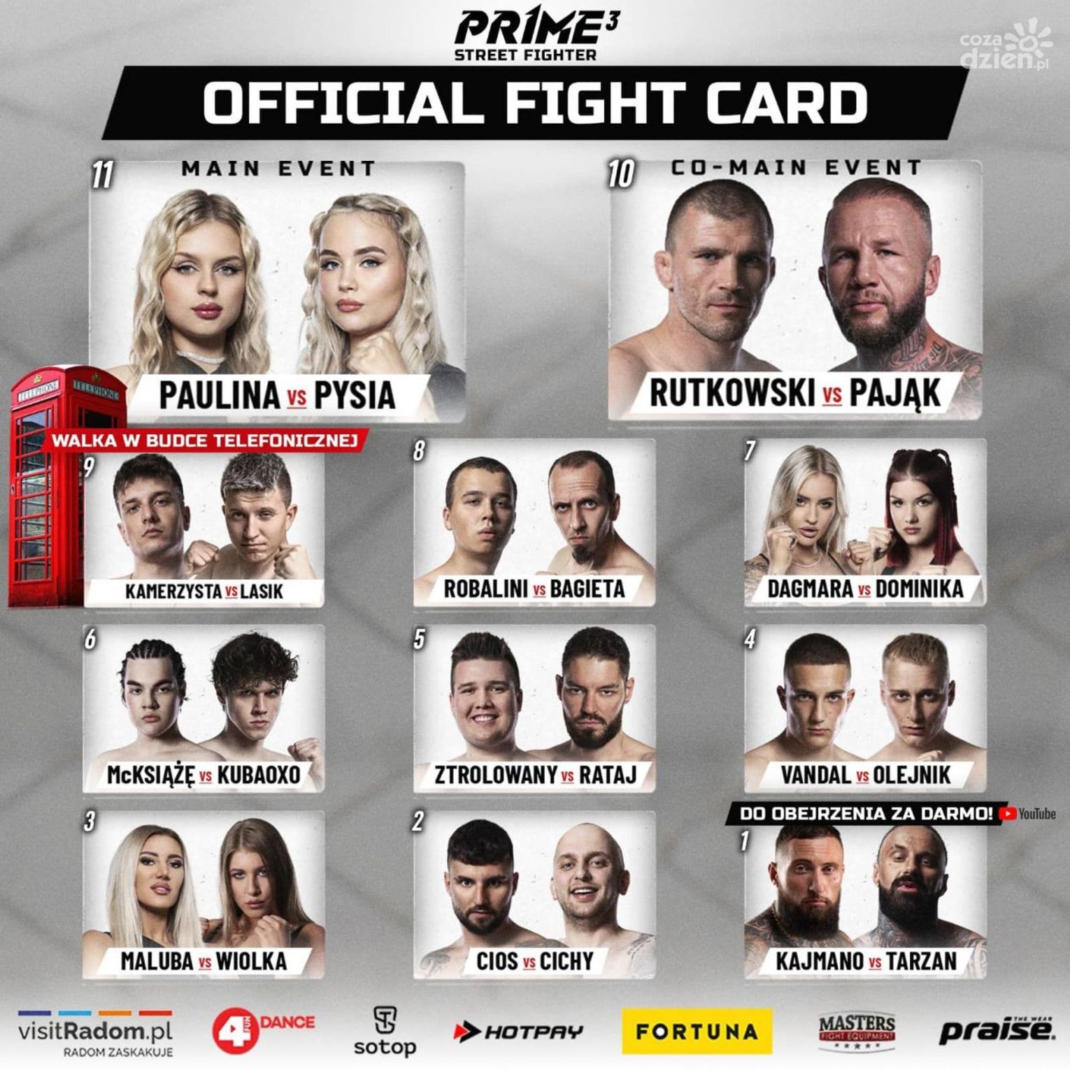 Poza wspomnianą walką w budce telefonicznej, w której umieszczeni zostaną Łukasz „Kamerzysta” Wawrzyniak i Ziemowit „Piast” Kossakowski, organizatorzy w ostatniej chwili dodali kilka pojedynków. Jednym z nich będzie starcie niskorosłych. O triumf powalczą Jan „Little Johnny" Kempisty i Maciej „Big Jack" Jarema. Za to radomscy fani mieszanych sztuk walk najbardziej oczekują na pojedynek Daniela „Rutka” Rutkowskiego, który w pojedynku pięściarskim zawalczy z Piotrem Pająkiem.