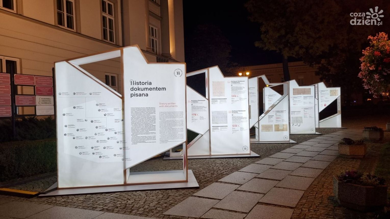 Ekspozycja składa się z pięciu geometrycznych elementów mieszczących kopie archiwaliów. Zbiór ten wyciąga najstarsze dokumenty nie tylko z mroków historii, ale także dosłownie z mroków, gdyż cała instalacja jest spektakularnie podświetlana i najbardziej olśniewająco prezentuje się po zmierzchu. Archiwum Państwowe w Radomiu, niezależnie od pory dnia, zaprasza wszystkich do zapoznania się z omówioną wystawą, która będzie dostępna dla zwiedzających do 4 listopada.
