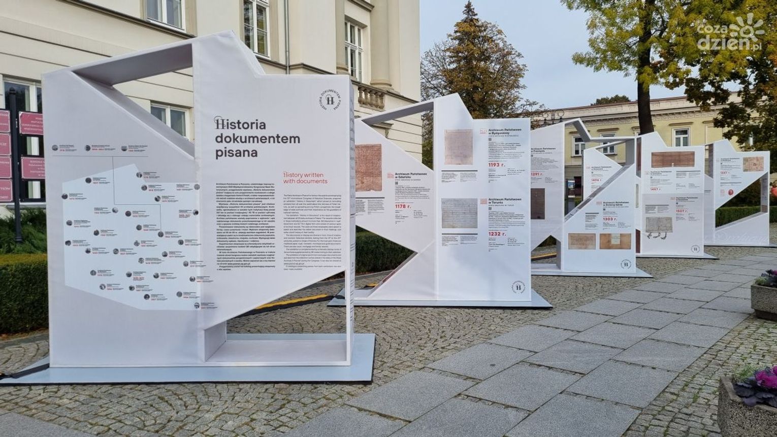 Wspomniana instalacja w ramach swojej podróży po kraju zawitała do naszego miasta, przez co radomianie zyskali wyjątkową okazję, aby zobaczyć reprodukcje najstarszych dokumentów ze wszystkich polskich archiwów państwowych, będących przedmiotem tej zajmującej wystawy. Radomskie archiwum pośród innych wiekowych materiałów reprezentuje oświadczenie Mściszka, dziedzica Pakosławia, datowane na 1377 r. i spisane w języku łacińskim na pergaminie, w którym ten, w imieniu swoim, brata i matki, zobowiązuje się nie osadzić w części wsi między stawem a granicą kmieci i zagrodników, i nie ulokować tam karczmy ani młyna.