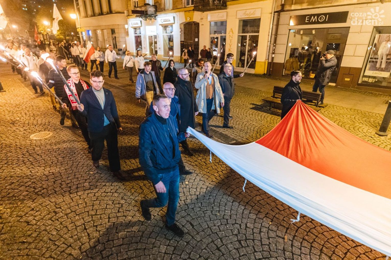 Przemarsz rozpoczął się o godzinie 19 na Placu Corazziego. Uczestnicy przeszli ulicą Żeromskiego oraz ulicą Piłsudskiego, gdzie pod tablicą upamiętniającą powstanie tzw. Republiki Radomskiej odbyło się okolicznościowe wystąpienia organizatorów oraz złożenie kwiatów. Podczas przemarszu obecny był między innymi poseł Grzegorz Braun z Konfederacji.