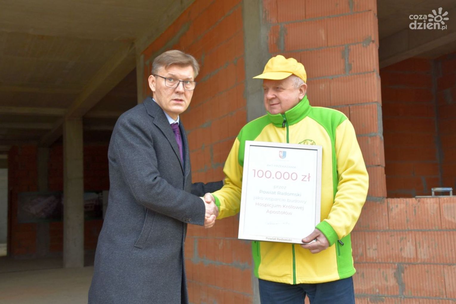 Przekazujemy kolejne 100 tys. zł i jest to już druga nasza “setka”. Trzecią zaplanowaliśmy na rok 2023. Gratuluję i dziękuję księdzu Kujawskiemu za tą niełatwą pracę jakąś wykonujecie dla chorych. Chciałbym przypomnieć, że w 2021 roku budowę wspierały też inne samorządy naszego powiatu, gmina Gózd 20 tys. zł, gmina Jedlnia Letnisko, 20 tys. zł, Wolanów, Zakrzew po 10 tys. zł. Natomiast w 2022 swoje wsparcie przekazały: gmina Gózd, 20 tys. zł, gmina Pionki, 10 tys. zł, Wolanów i Zakrzew również po 10 tys. zł - mówi Waldemar Trelka, starosta radomski.