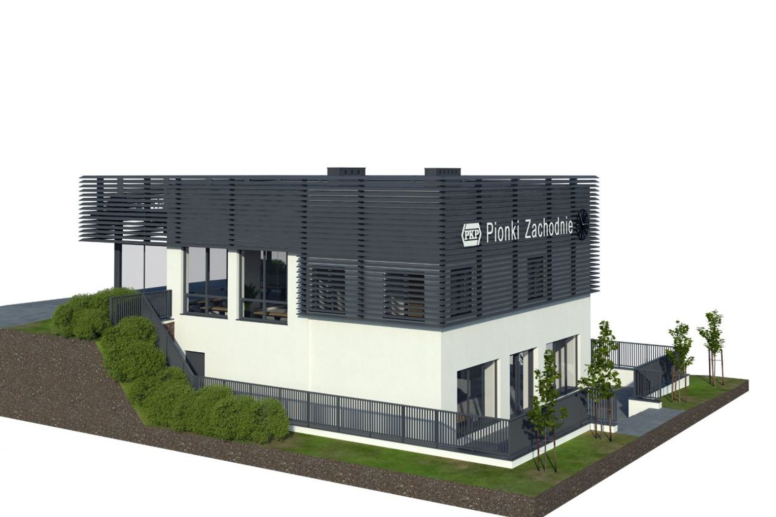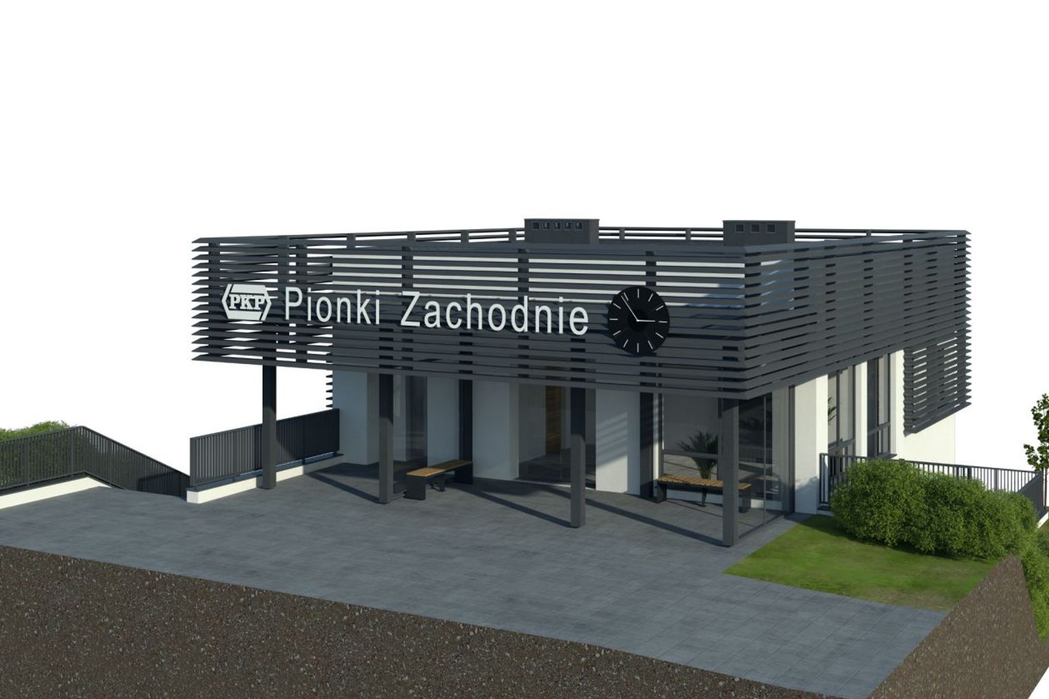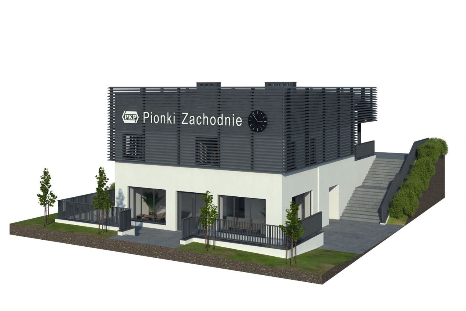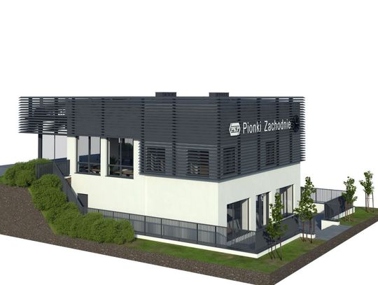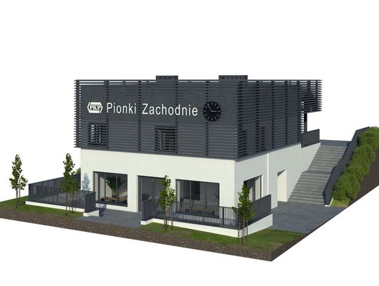 Całkowitym przeciwieństwem dworca Pionki jest drugi z przebudowywanych dworców - Pionki Zachodnie. Powstał on w latach 50. XX w. i diametralnie zmieni swój wygląd. Elewacja zyska bardziej nowoczesny charakter, dzięki jasnej kolorystyce tynków, z którą na piętrze będą współgrać żaluzje fasadowe w kolorze antracytowym. Nowością na elewacjach będą litery z nazwą dworca, podświetlane w kolorze białym, a także zegary na fasadach od strony miasta i peronów. Bryła budynku poszerzona zostanie na piętrze od strony peronów o poczekalnię zewnętrzną w formie wiaty z przeszkleniami z dwóch stron. Przedłużeniem poczekalni będzie klimatyzowany hol. Zostanie on wyposażony w ławki, kosze, gabloty z rozkładami jazdy, a także elektroniczne tablice przyjazdów i odjazdów pociągów. W jego sąsiedztwie znajdą się pomieszczenia kasy biletowej oraz toalety. Z kolei na parterze dworca będzie mieścić się niewielki lokal komercyjny na wynajem. Nowością w budynku będzie winda, która połączy obydwie kondygnacje dworca.