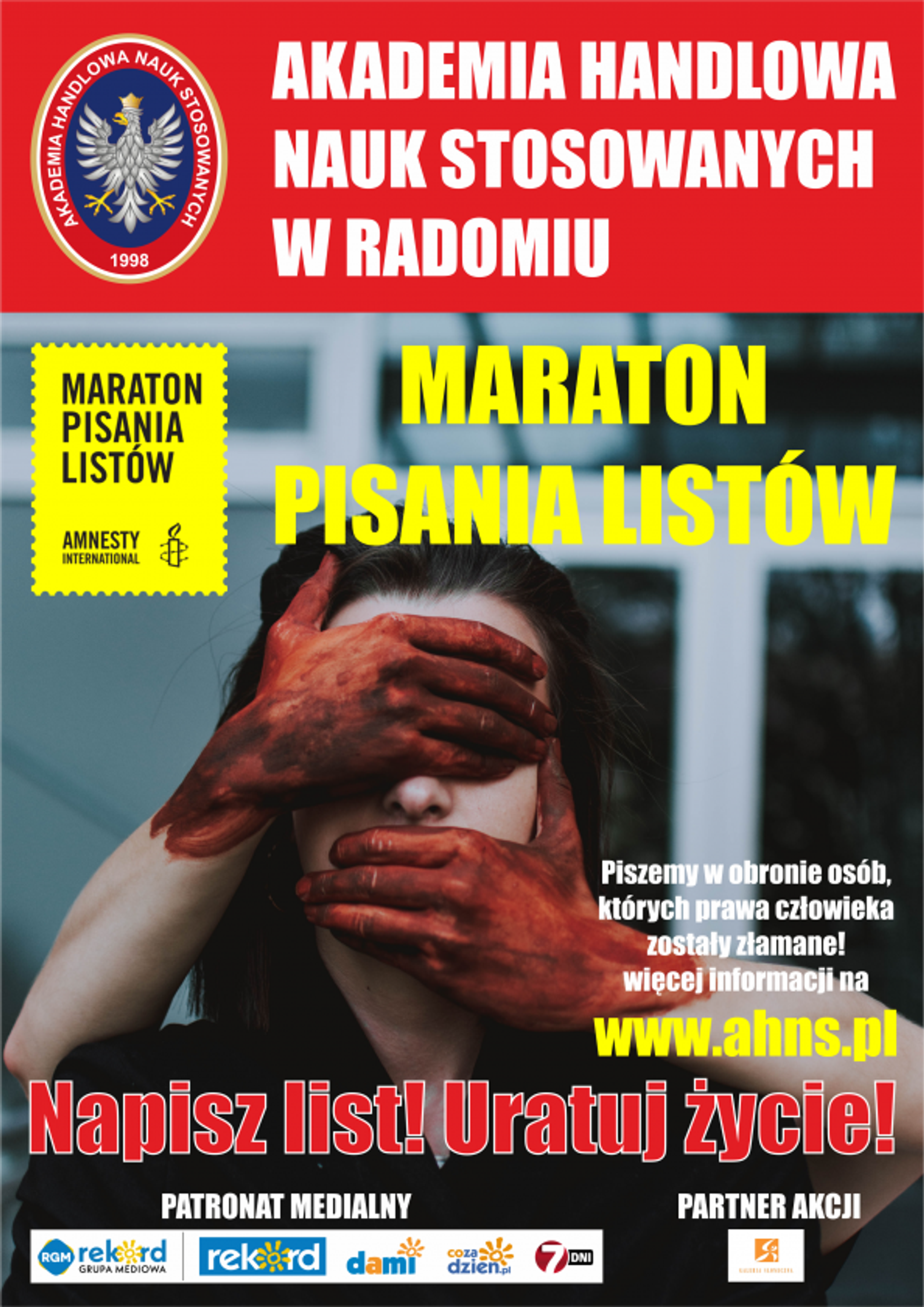 Akademia Handlowa Nauk Stosowanych w Radomiu zaprasza również na organizowane w ramach Maratonu pisania Listów bezpłatne webinary, które odbędą się na Facebooku: 29 listopada, godz. 18.00 - gościem będzie prof. Marcin Matczak ;