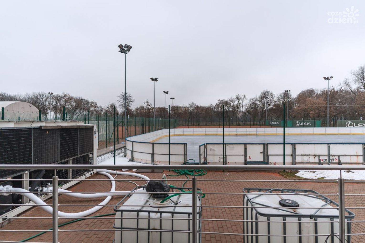 Miejski Ośrodek Sportu i Rekreacji w Radomiu przygotowuje się do uruchomienia lodowiska. Na kortach przy ul. Bulwarowej zbudowana została już cała konstrukcja lodowiska i stanął agregat. Aktualnie trwa tworzenie tafli lodowiska.