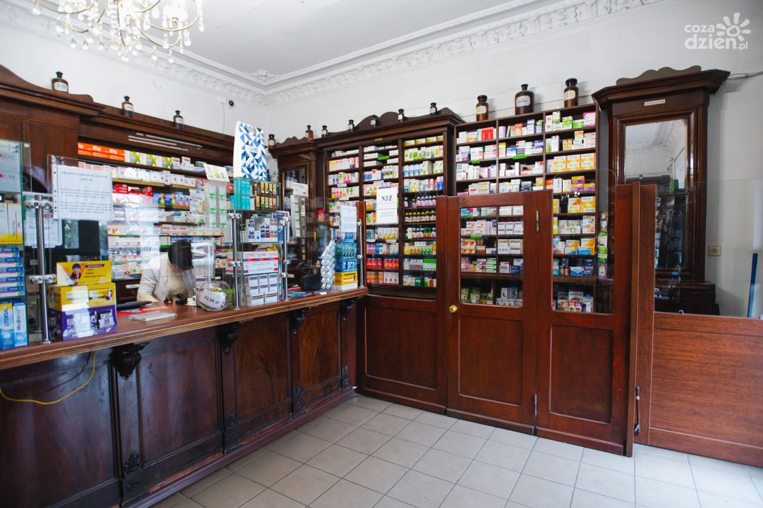 Po wybuchu II wojnie światowej Feliks Tadeusz przedostał się do Anglii, a aptekę prowadziła jego żona Kamila. Pałac Karschów znalazł się w czasie okupacji w tzw. dzielnicy niemieckiej, więc Niemcy przejęli także skład. Funkcjonował pod nazwą Die Deutsche Apotheke. Kamila Łagodzińska nielegalnie dostarczała ludziom podziemia środki opatrunkowe, lekarstwa i pieniądze, a w piwnicach przechowywała broń, amunicję i prasę podziemną.