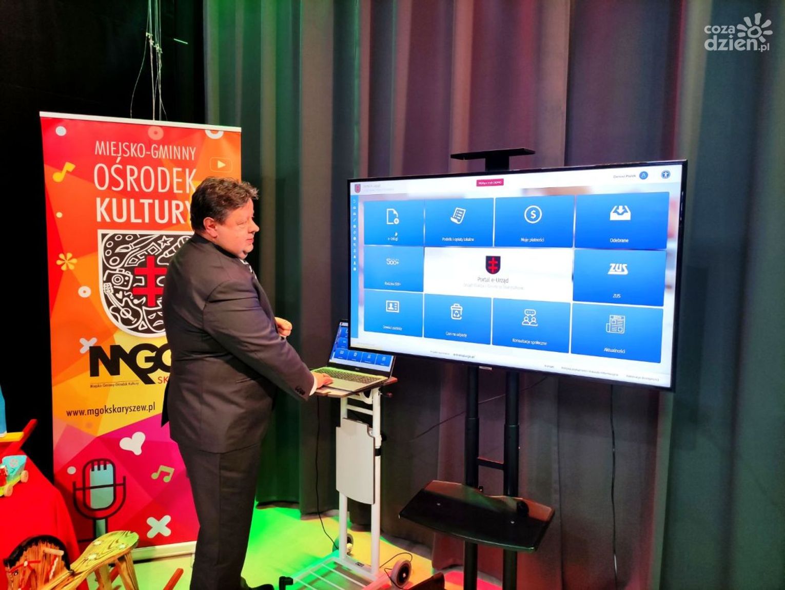 Mieszkańcy nie muszą już z każdą sprawą chodzić do urzędu i stać w kolejkach. - Podstawowe sprawy można załatwić z domu przy użyciu komputera lub aplikacji w telefonie - mówił Dariusz Piątek, burmistrz Skaryszewa. - Po zalogowaniu na e-urząd, można sprawdzić ile wynoszą nasze opłaty, np. za śmieci. Natomiast aplikacja w telefonie przypomni nam np. o tym jak prawidłowo segregować odpady. Dodatkowo, za pośrednictwem portalu można złożyć wniosek o 500+, bo portal jest połączony z Zakładem Ubezpieczeń Społecznych oraz z profilem zaufanym - mówił burmistrz.