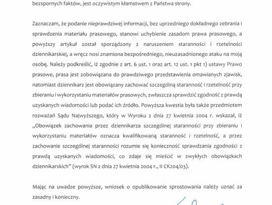 Całe sprostowanie można przeczytać poniżej.