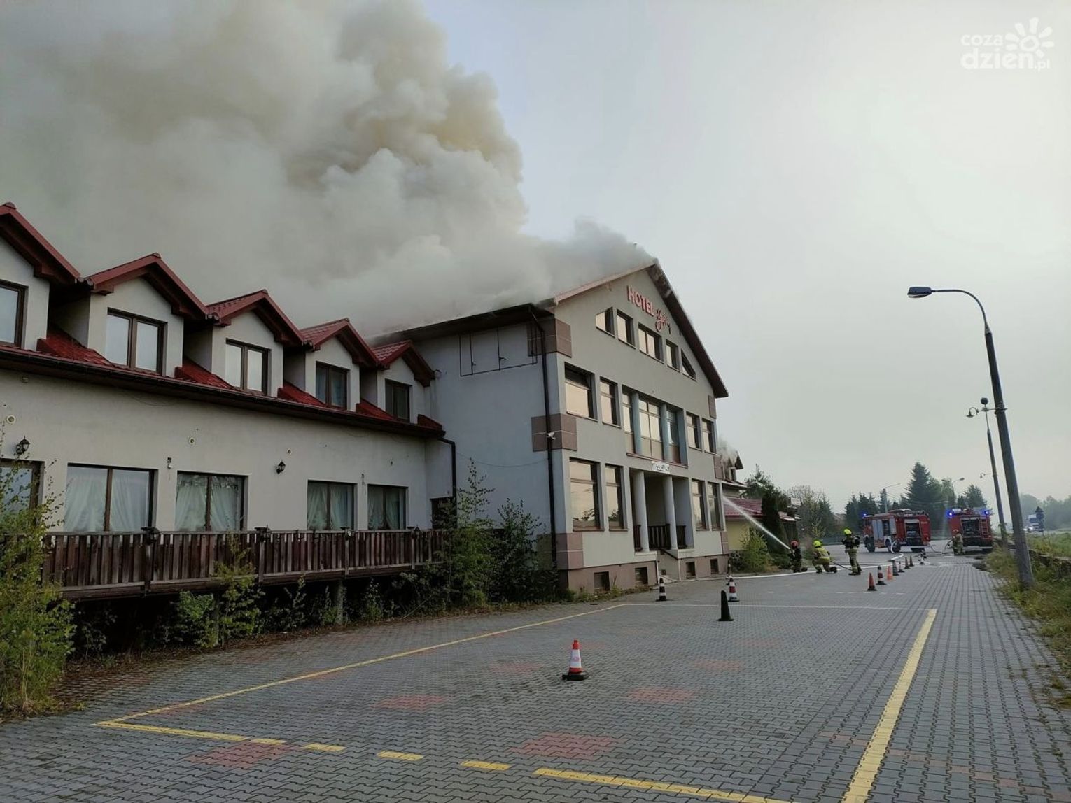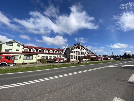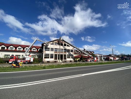 - Pożarem objęte było poddasze budynku po części hotelowej. Obecnie (g. 9.00 - red.) na miejscu pracuje około 20 zastępów państwowej i ochotniczej straży pożarnej - mówi kpt. Robert Rycerski z szydłowieckiej straży pożarnej.