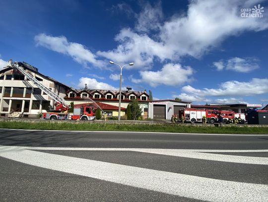 Zgłoszenie wpłynęło o 5.40. Pożarem objęte było poddasze Hotelu Iguś w Szydłowcu.