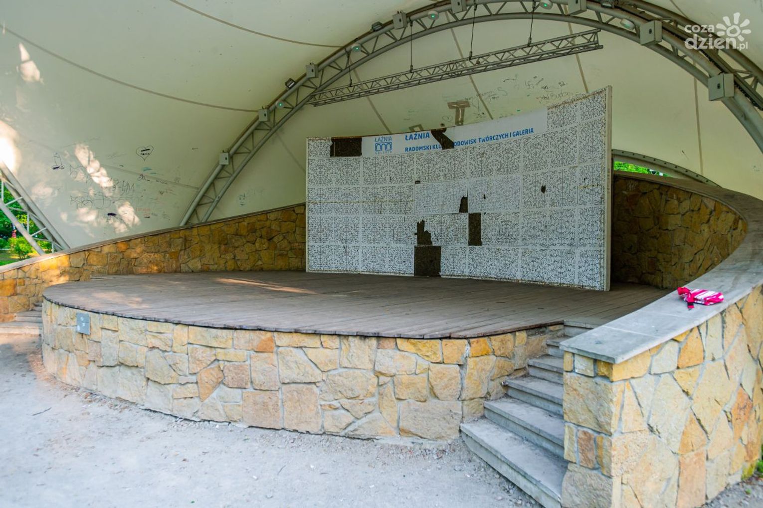 Połamane ekrany akustyczne, opisane wulgarnym słownictwem ściany, pocięte zadaszenie - tak wygląda muszla koncertowa w parku Kościuszki. Miejsce kulturalnych spotkań w centrum miasta jest nagminnie niszczone przez wandali, głównie grupy nastolatków, którzy niejednokrotnie spożywają w tym miejscu alkohol. Trzy kamery znajdujące się w pobliżu nie odstraszają młodzieży niszczącej muszlę bez konkretnego powodu. Niebawem rozpoczyna się sezon artystyczny, co planuje "Łaźnia", której obiekt podlega?