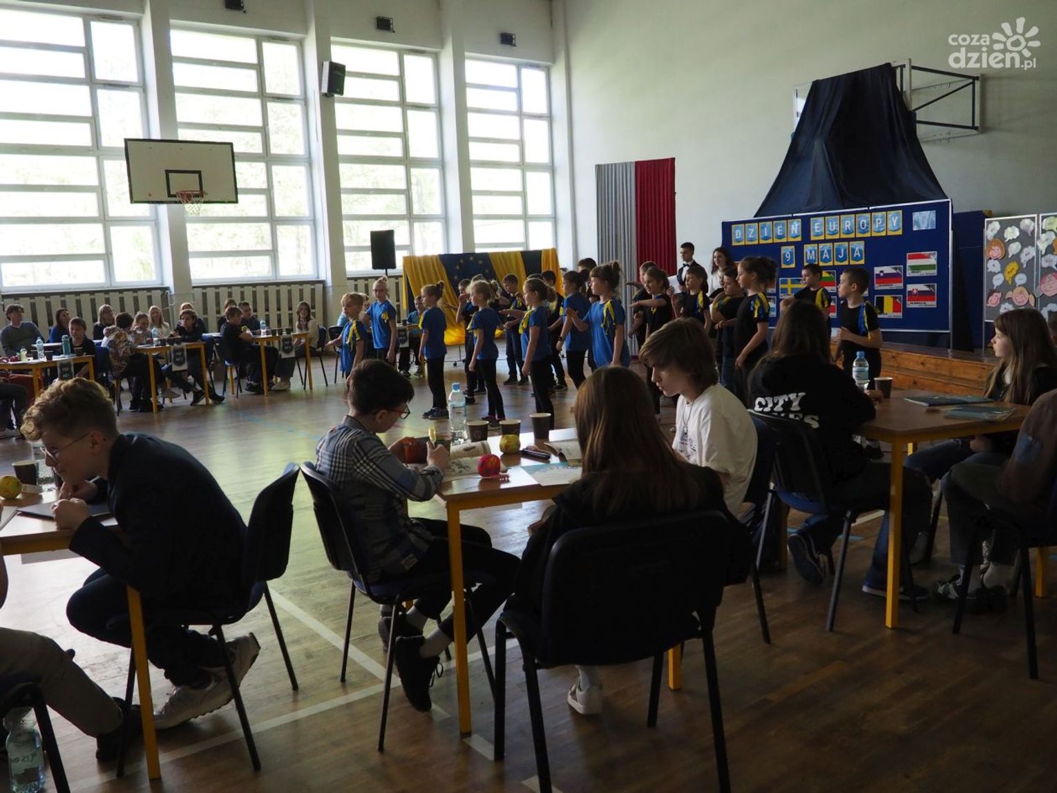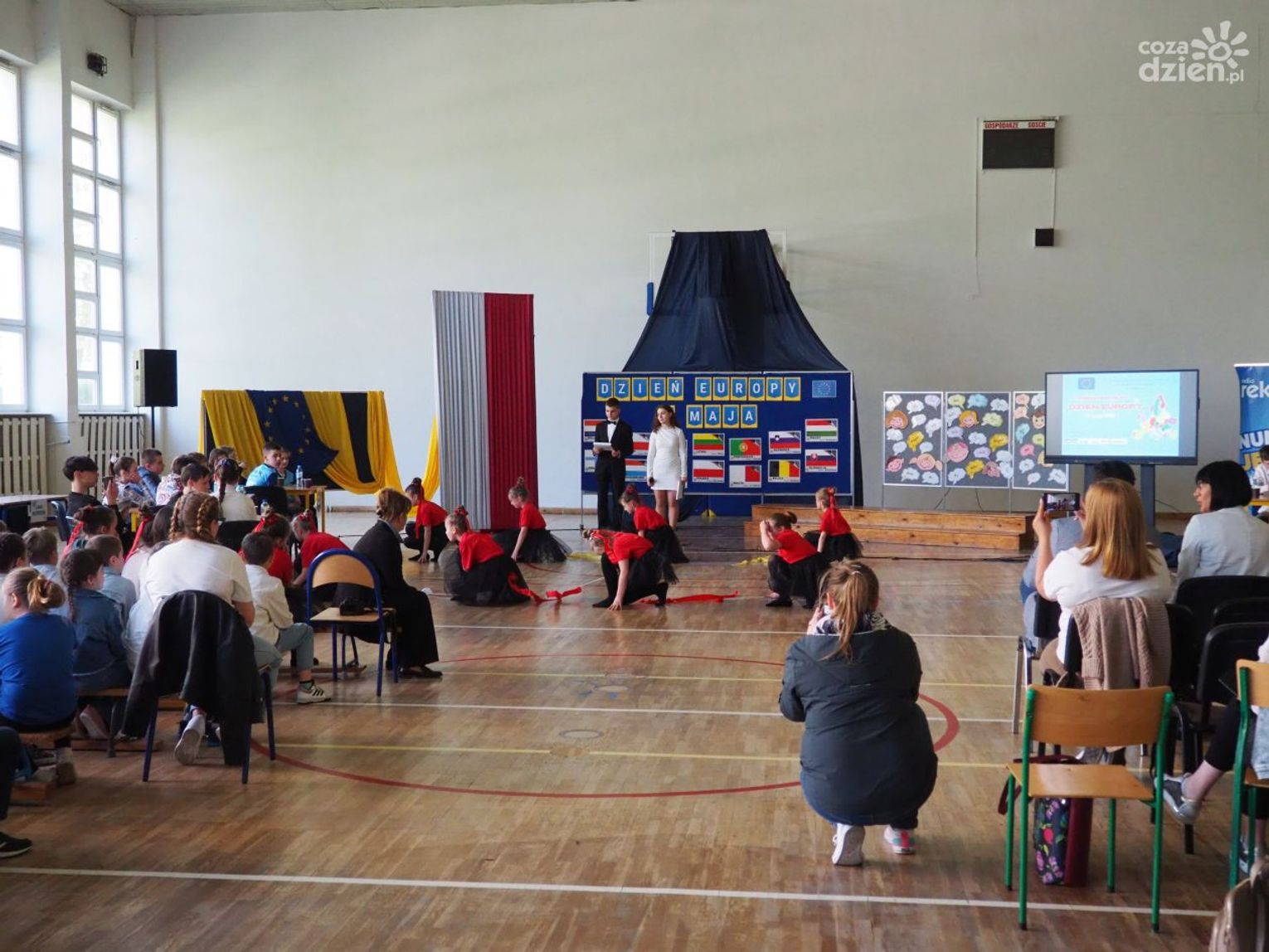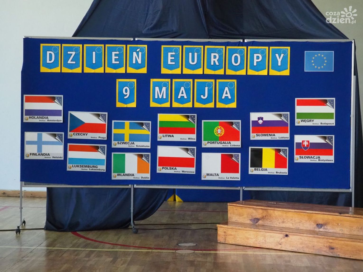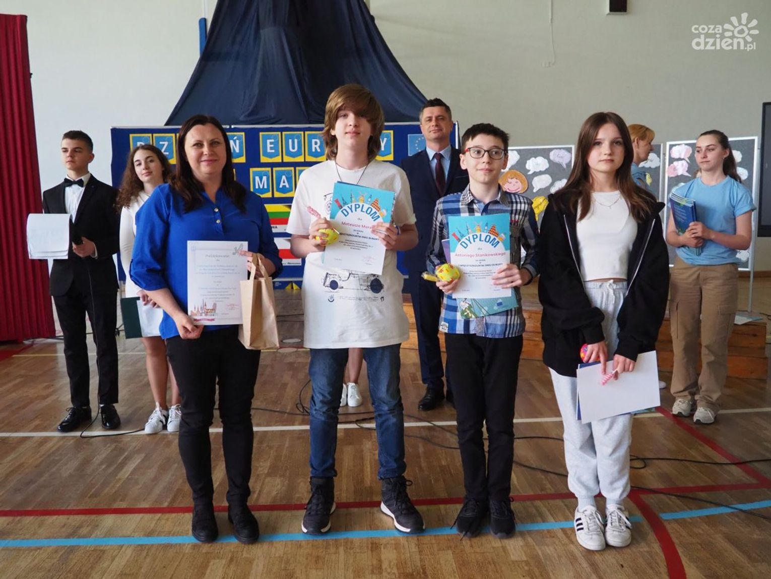 Warto dodać, że w dniach 9-11 maja, poprzedzających główne obchody Dnia Europy w szkole odbyło się wiele aktywności, w których mogli uczestniczyć wszyscy uczniowie klas 1-8 oraz dzieci uczęszczające do oddziału przedszkolnego. Uczniowie uczęszczający do oddziałów 0-3 z wykorzystaniem różnych technik plastycznych i graficznych wykonali plakaty nawiązujące tematycznie do wybranych krajów europejskich. Uczniowie klas 4-8 wzięli udział w Szkolnym Konkursie o Unii Europejskiej, którego celem było poszerzenie wiedzy o Unii Europejskiej, o ojcach zjednoczonej Europy oraz miejscu Polski w Europie oraz Szkolnym Konkursie Plastycznym „Zabytki Europy” mającym na celu zwrócenie uwagi na otaczający nas świat, a przede wszystkim na piękno architektury i dziedzictwa kulturalnego Europy. Zarówno plakaty, jak i prace plastyczne przedstawiające najbardziej znane zabytki, które można podziwiać podczas zwiedzania wielu miast europejskich zostały zaprezentowane podczas wystawy towarzyszącej głównym obchodom Dnia Europy.