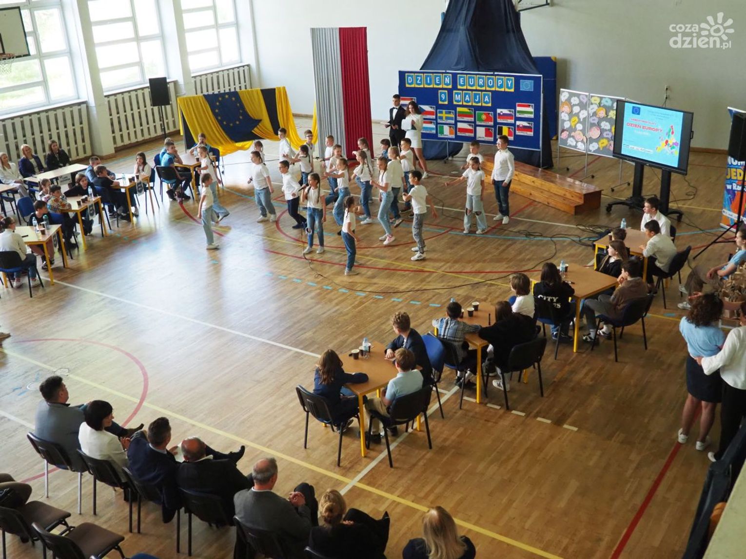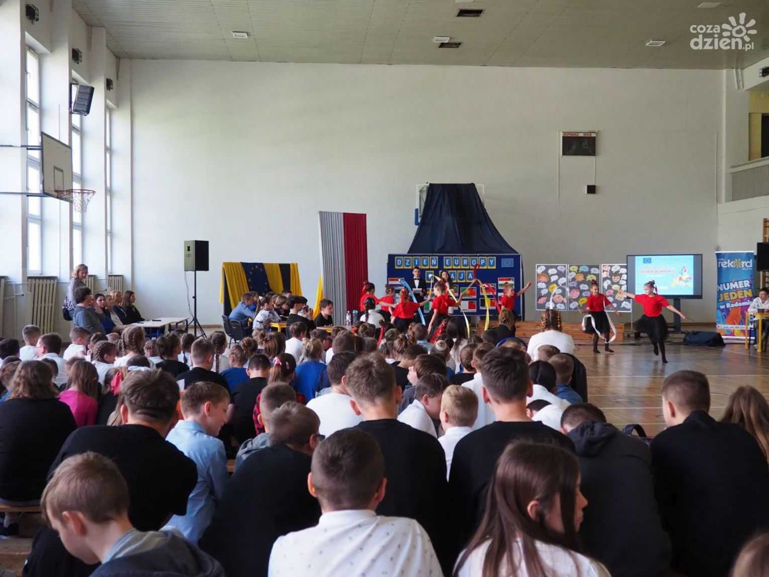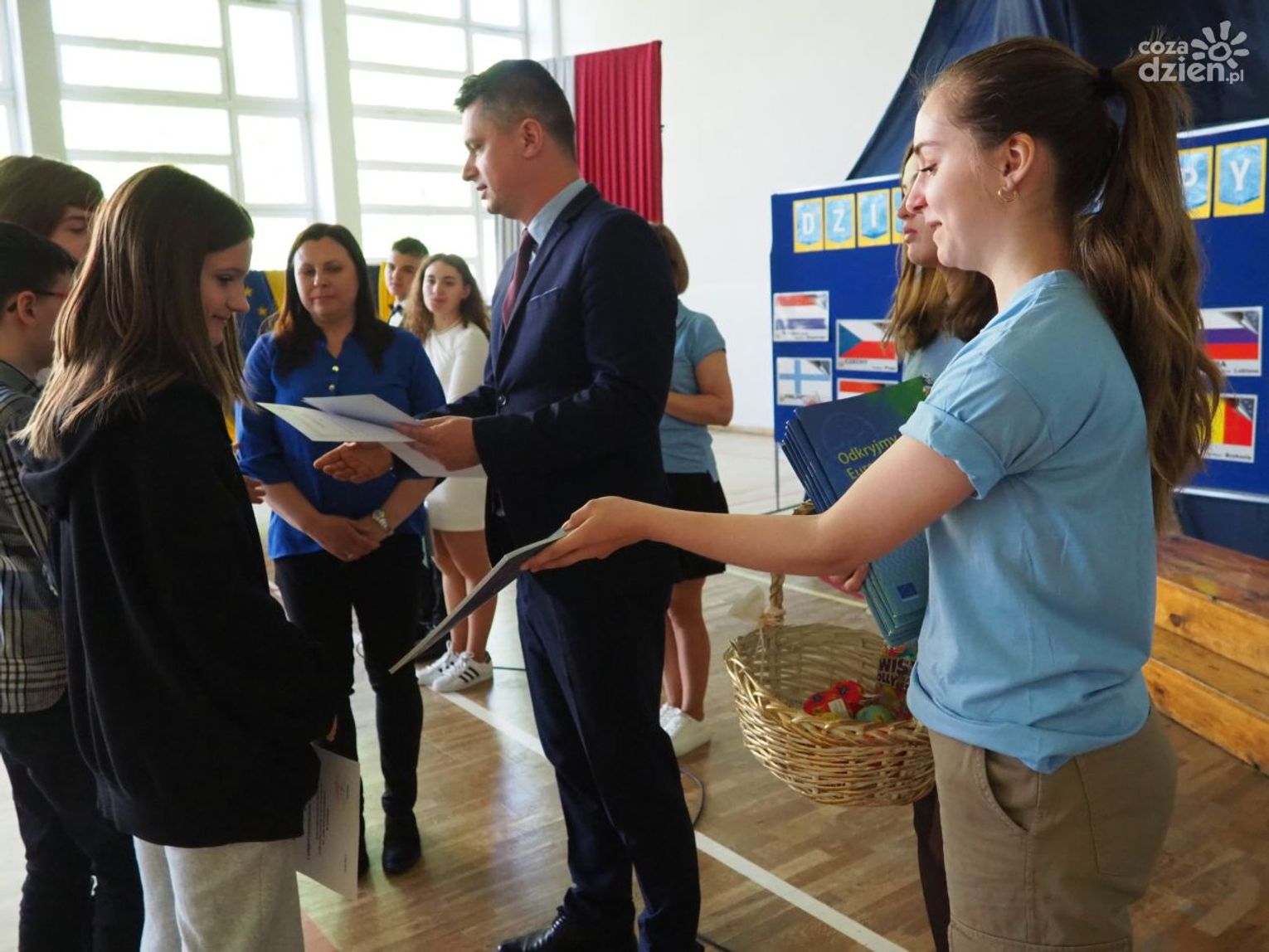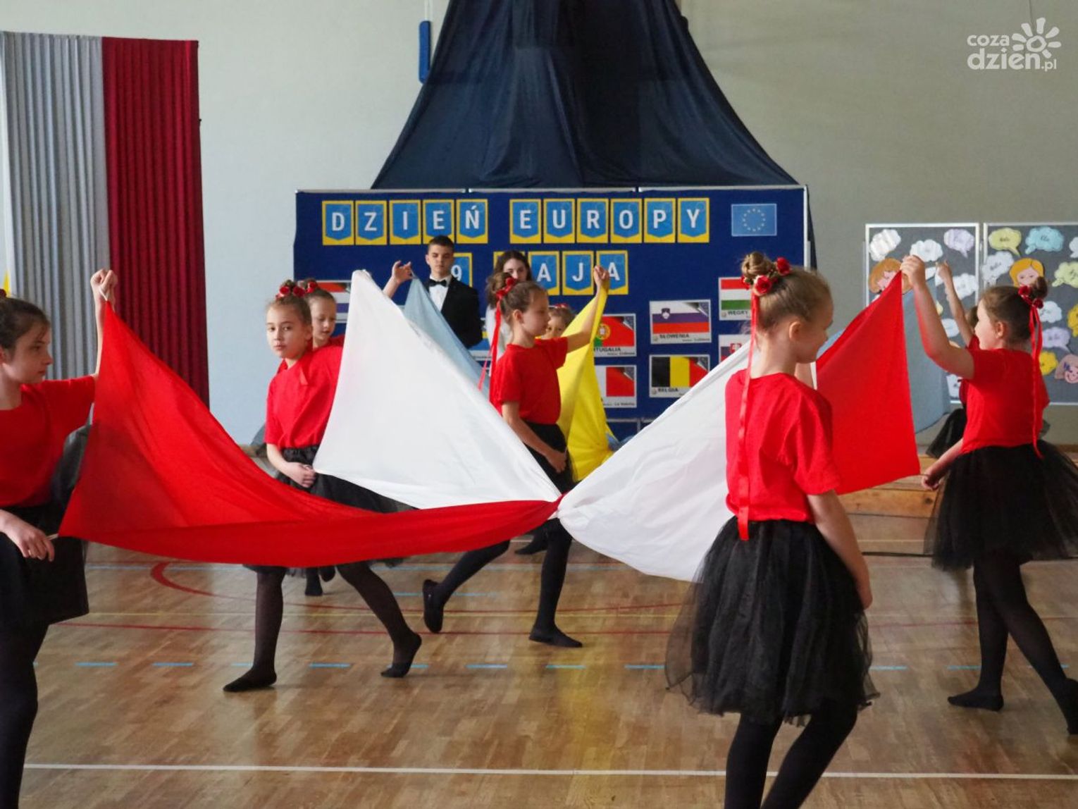 Warto dodać, że w dniach 9-11 maja, poprzedzających główne obchody Dnia Europy w szkole odbyło się wiele aktywności, w których mogli uczestniczyć wszyscy uczniowie klas 1-8 oraz dzieci uczęszczające do oddziału przedszkolnego. Uczniowie uczęszczający do oddziałów 0-3 z wykorzystaniem różnych technik plastycznych i graficznych wykonali plakaty nawiązujące tematycznie do wybranych krajów europejskich. Uczniowie klas 4-8 wzięli udział w Szkolnym Konkursie o Unii Europejskiej, którego celem było poszerzenie wiedzy o Unii Europejskiej, o ojcach zjednoczonej Europy oraz miejscu Polski w Europie oraz Szkolnym Konkursie Plastycznym „Zabytki Europy” mającym na celu zwrócenie uwagi na otaczający nas świat, a przede wszystkim na piękno architektury i dziedzictwa kulturalnego Europy. Zarówno plakaty, jak i prace plastyczne przedstawiające najbardziej znane zabytki, które można podziwiać podczas zwiedzania wielu miast europejskich zostały zaprezentowane podczas wystawy towarzyszącej głównym obchodom Dnia Europy.