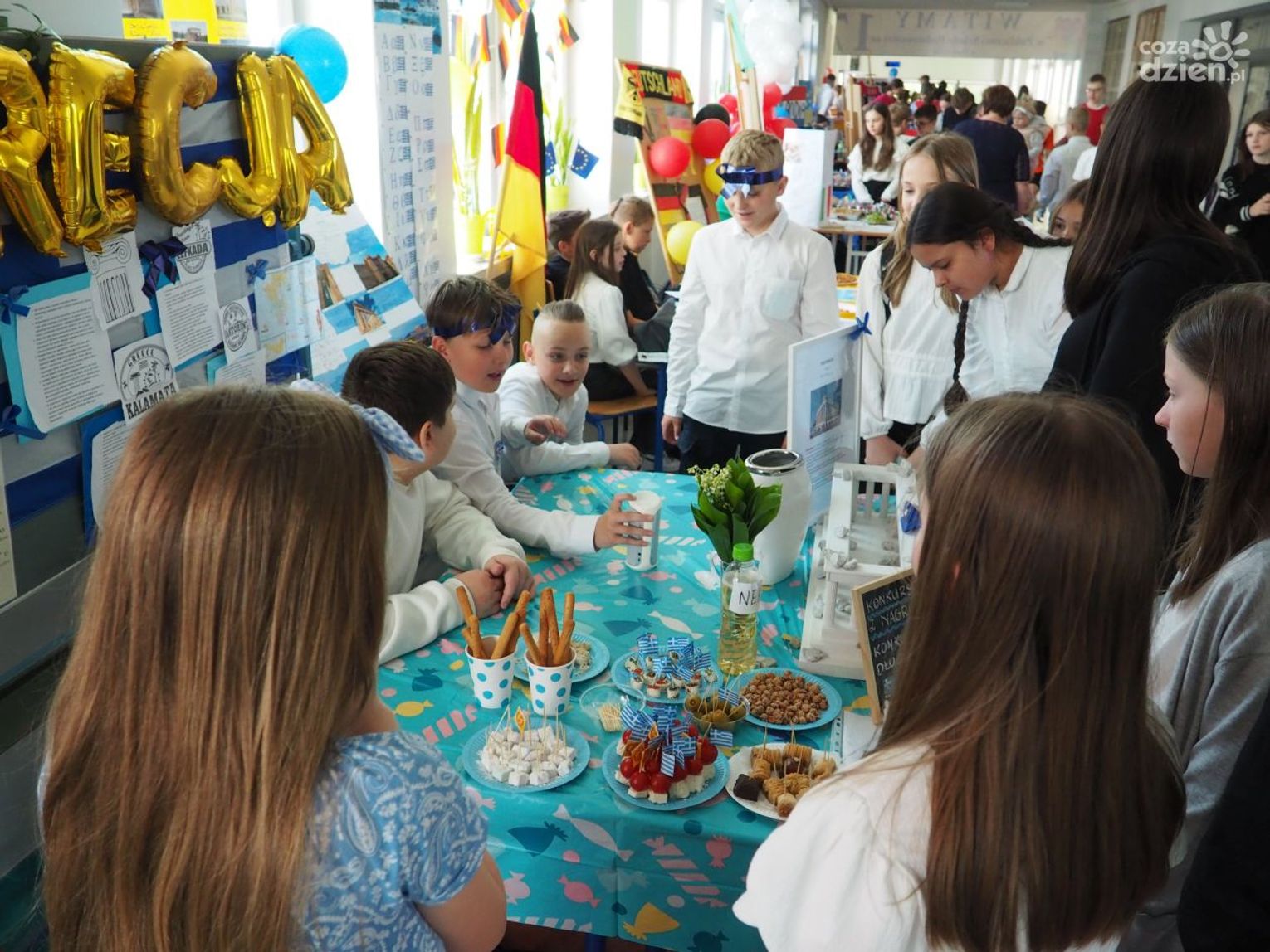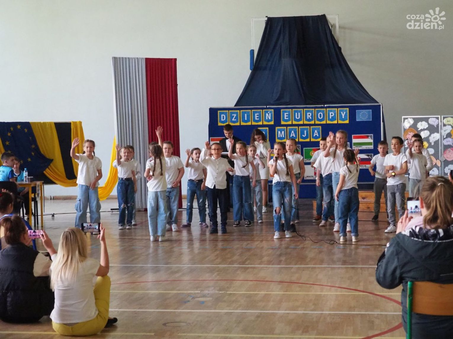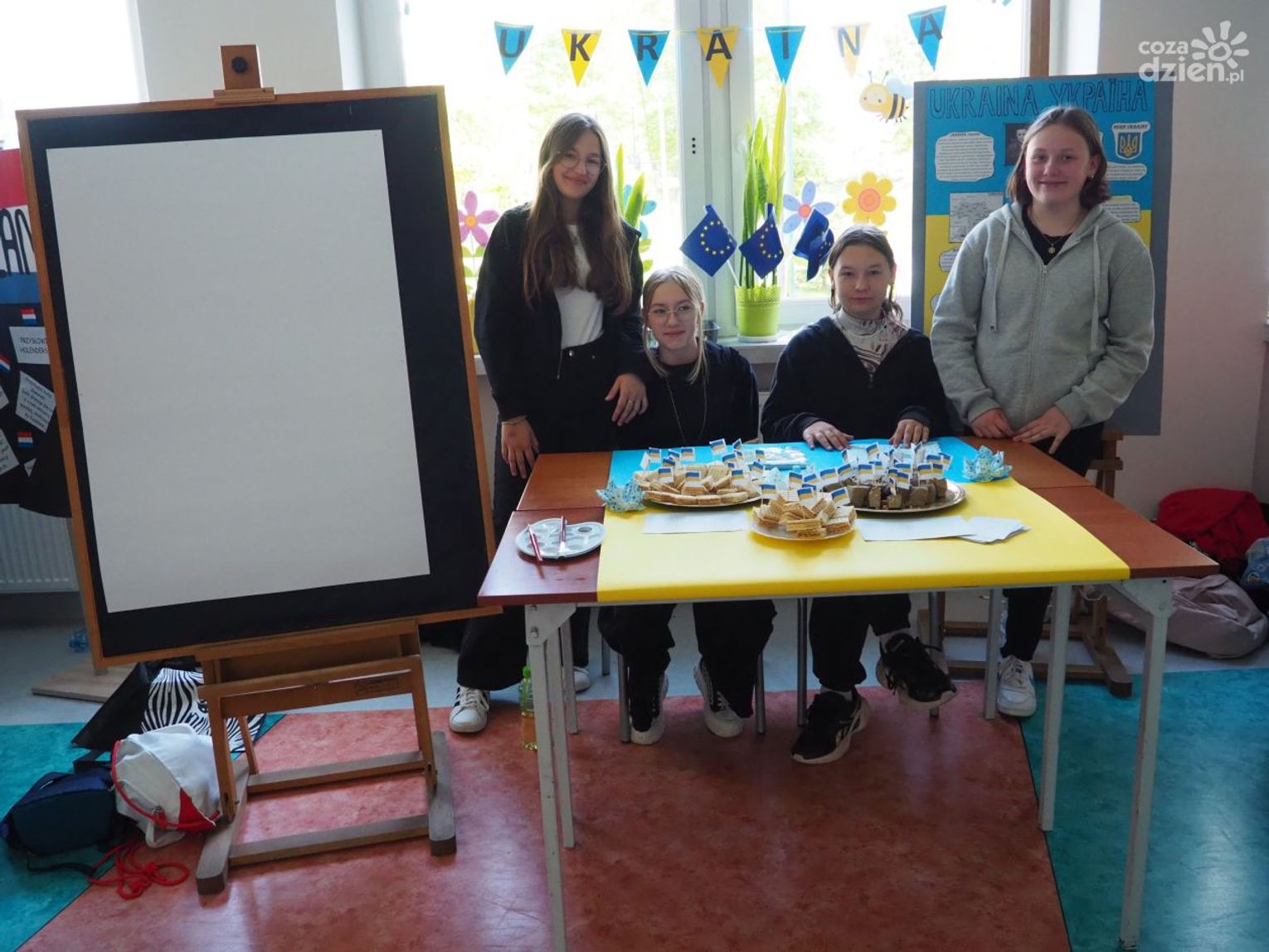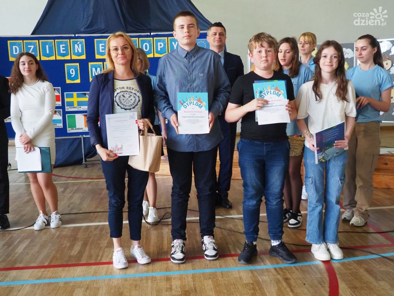 Warto dodać, że w dniach 9-11 maja, poprzedzających główne obchody Dnia Europy w szkole odbyło się wiele aktywności, w których mogli uczestniczyć wszyscy uczniowie klas 1-8 oraz dzieci uczęszczające do oddziału przedszkolnego. Uczniowie uczęszczający do oddziałów 0-3 z wykorzystaniem różnych technik plastycznych i graficznych wykonali plakaty nawiązujące tematycznie do wybranych krajów europejskich. Uczniowie klas 4-8 wzięli udział w Szkolnym Konkursie o Unii Europejskiej, którego celem było poszerzenie wiedzy o Unii Europejskiej, o ojcach zjednoczonej Europy oraz miejscu Polski w Europie oraz Szkolnym Konkursie Plastycznym „Zabytki Europy” mającym na celu zwrócenie uwagi na otaczający nas świat, a przede wszystkim na piękno architektury i dziedzictwa kulturalnego Europy. Zarówno plakaty, jak i prace plastyczne przedstawiające najbardziej znane zabytki, które można podziwiać podczas zwiedzania wielu miast europejskich zostały zaprezentowane podczas wystawy towarzyszącej głównym obchodom Dnia Europy.